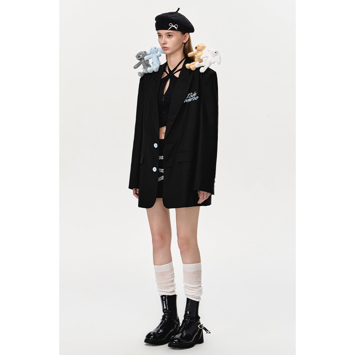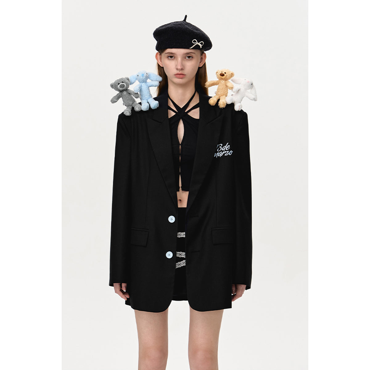 13DE MARZO Plush Bear Friends Suit Jacket Black