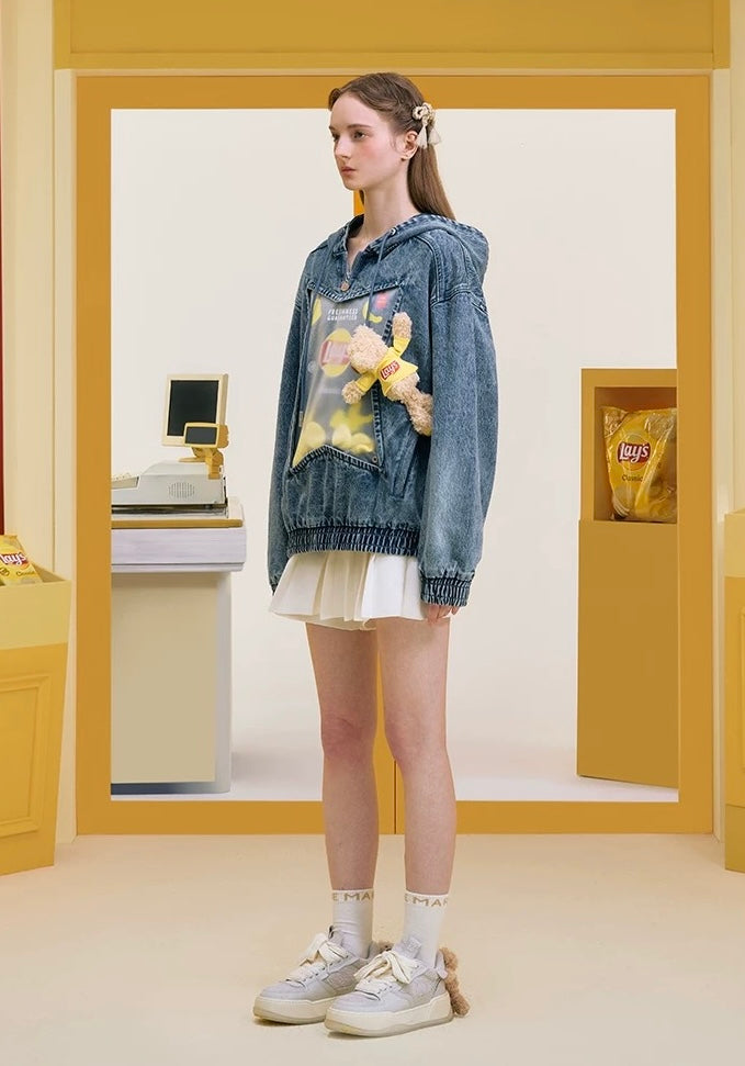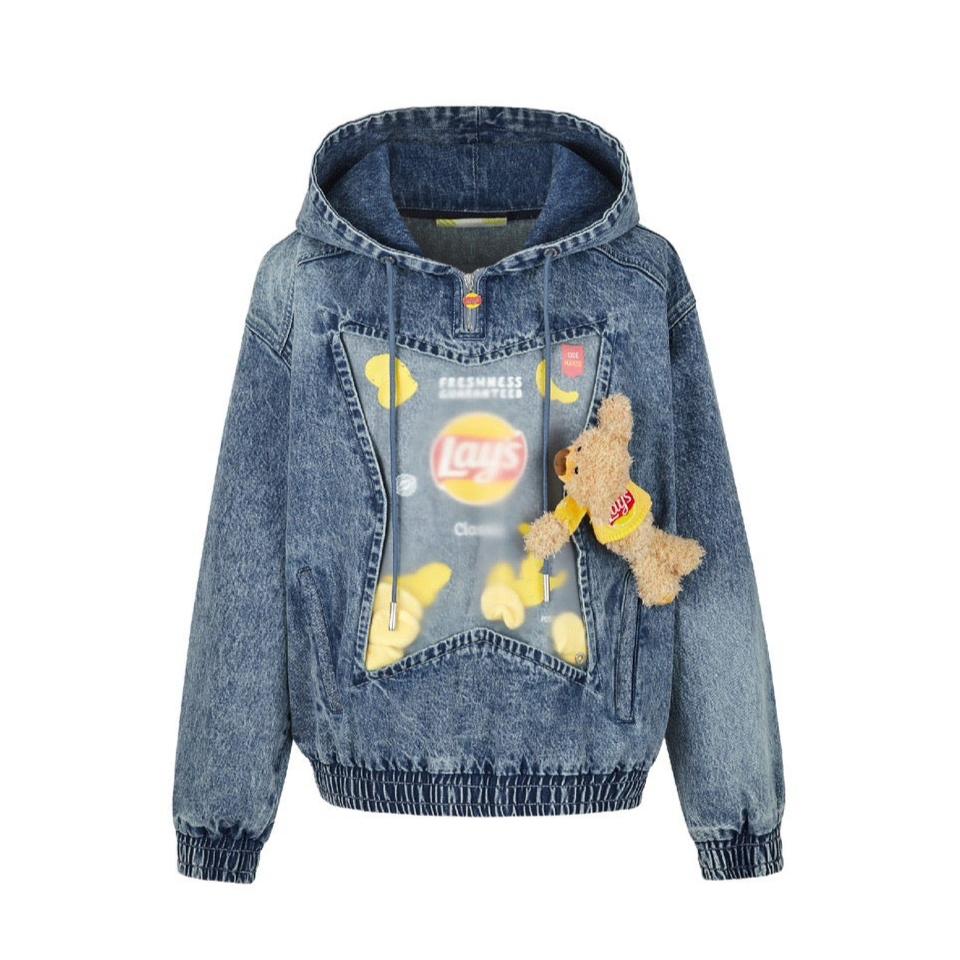 13De Marzo X Lay's Flavor Bear Denim Hoodie Blue