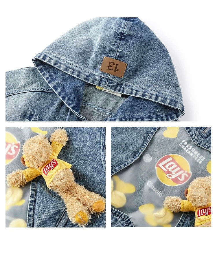 13DE MARZO X Lay's Flavor Bear Denim Hoodie Blue