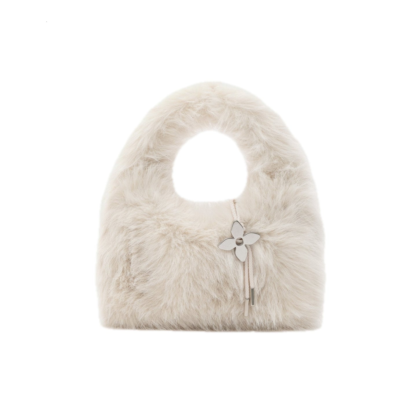 - Design: SMFK's faux fur bag designed in 2024 draws inspiration from the perfectly natural curved shapes that pebbles create when polished by the power of water. The brand has extracted inspiration from the traditional Chinese jade pendants and sachets worn on the waist, placing a more modern and minimalist Compass metal flower pendant charm on the zipper.