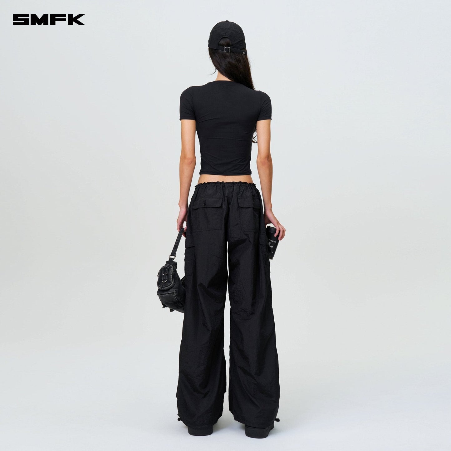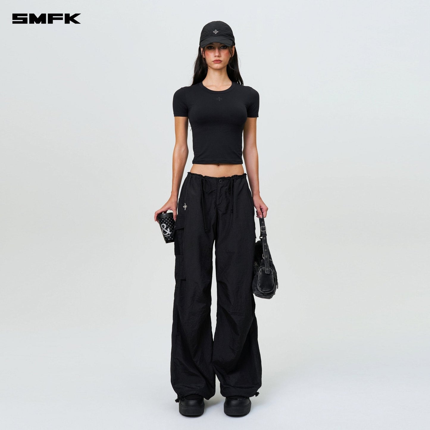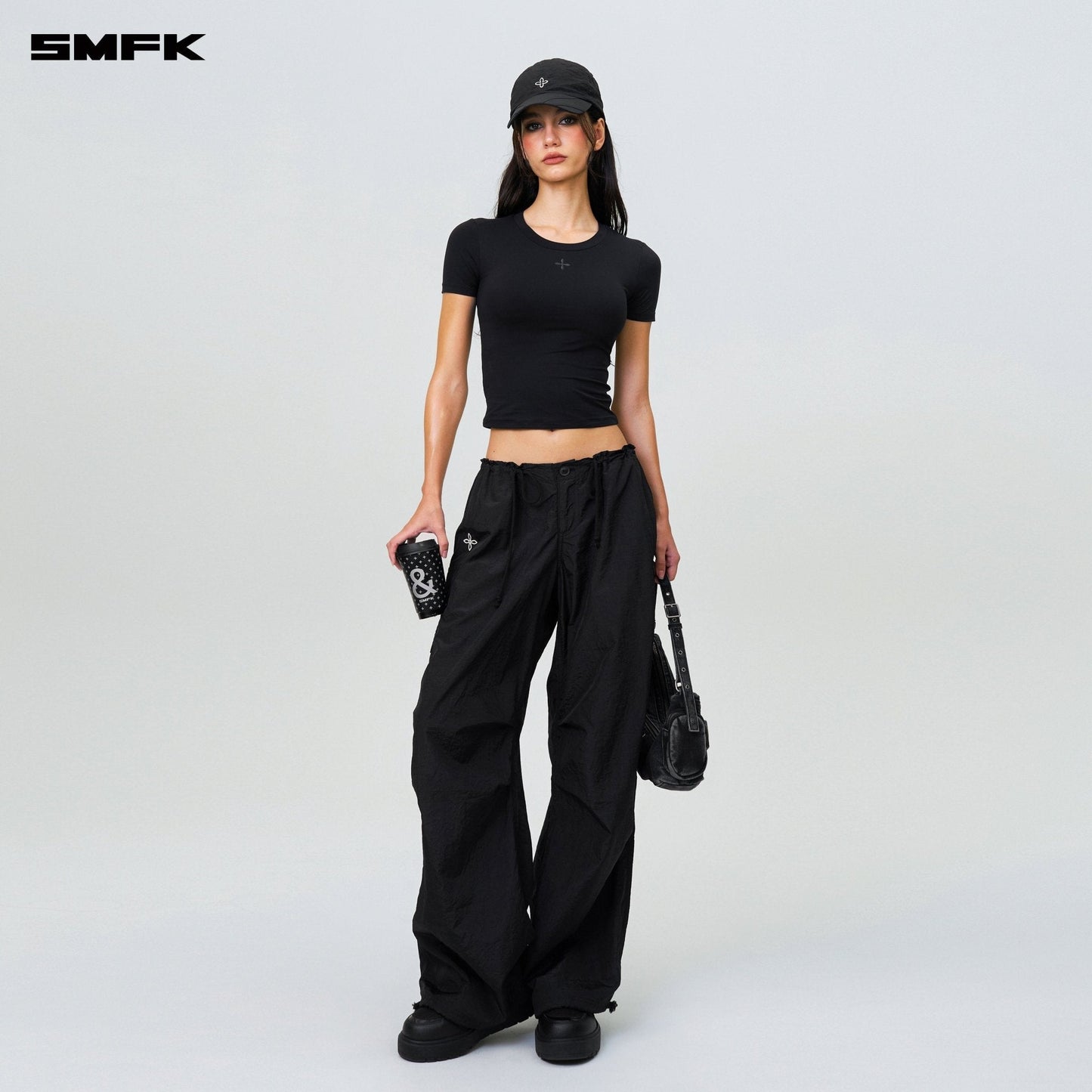 - Design: The SMFK Hug Series from 2024 features a lightweight, high-elastic skin-like fabric in a minimalist one-piece design. The long-fitted skin tee has a slight waist cinch and a cross emblem printed on the neckline.