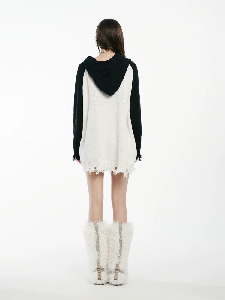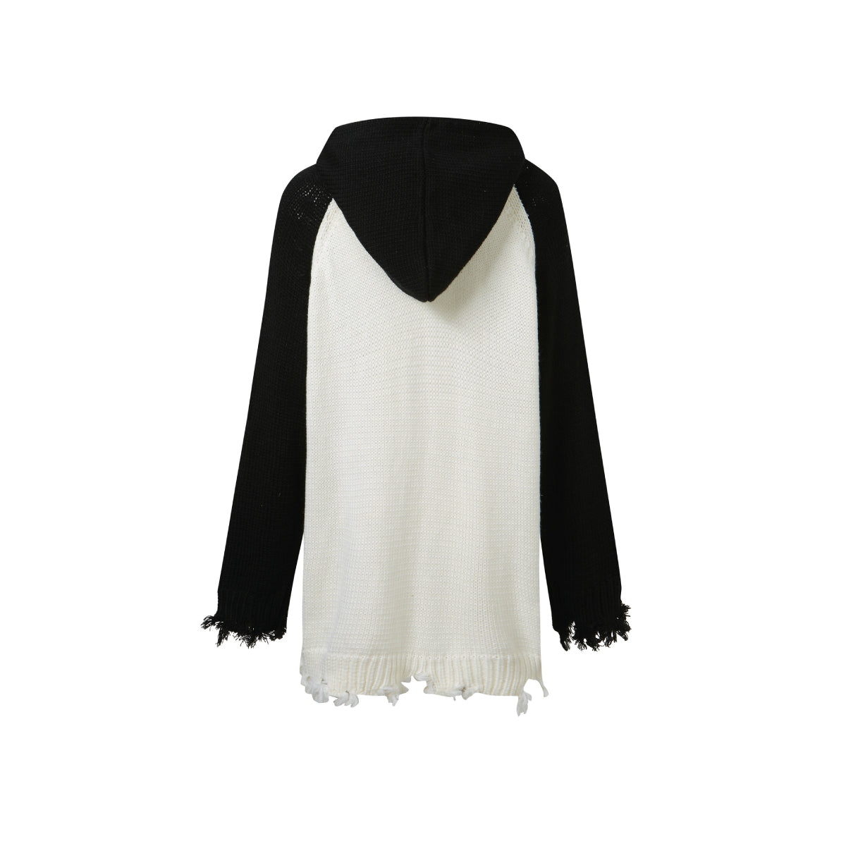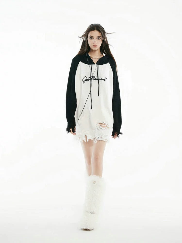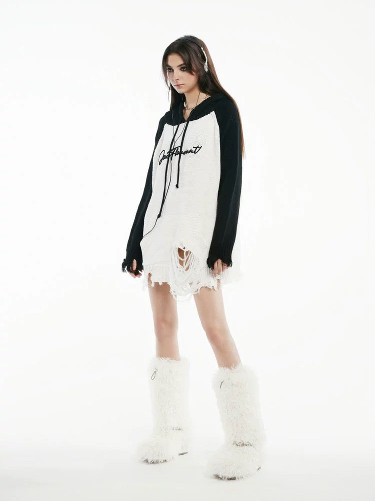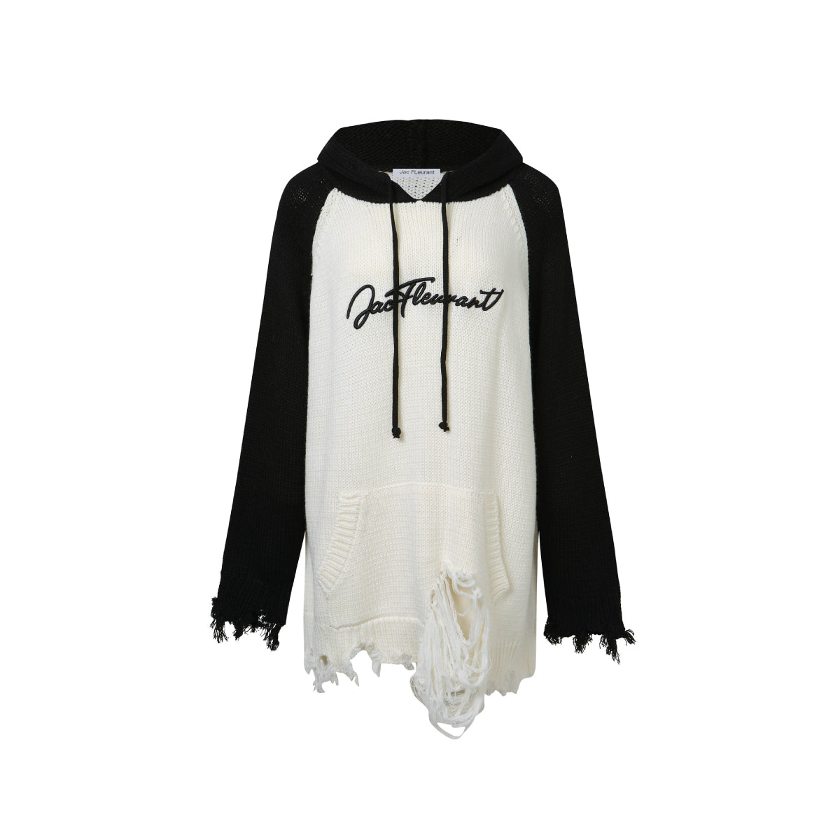 Jac Fleurant Color Blocked Destroyed Knit Hoodie Black