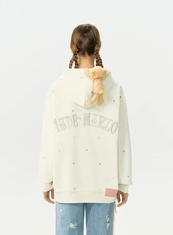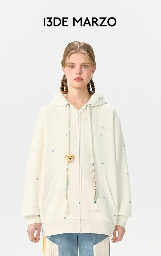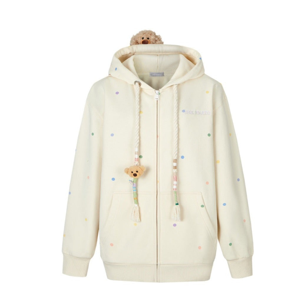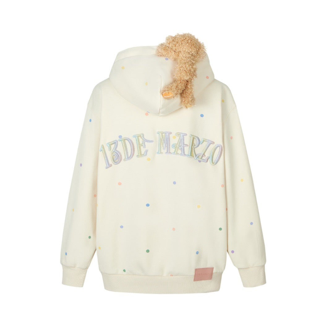 13DE MARZO Bear Colorful Dots Zip Hoodie Vanilla Ice