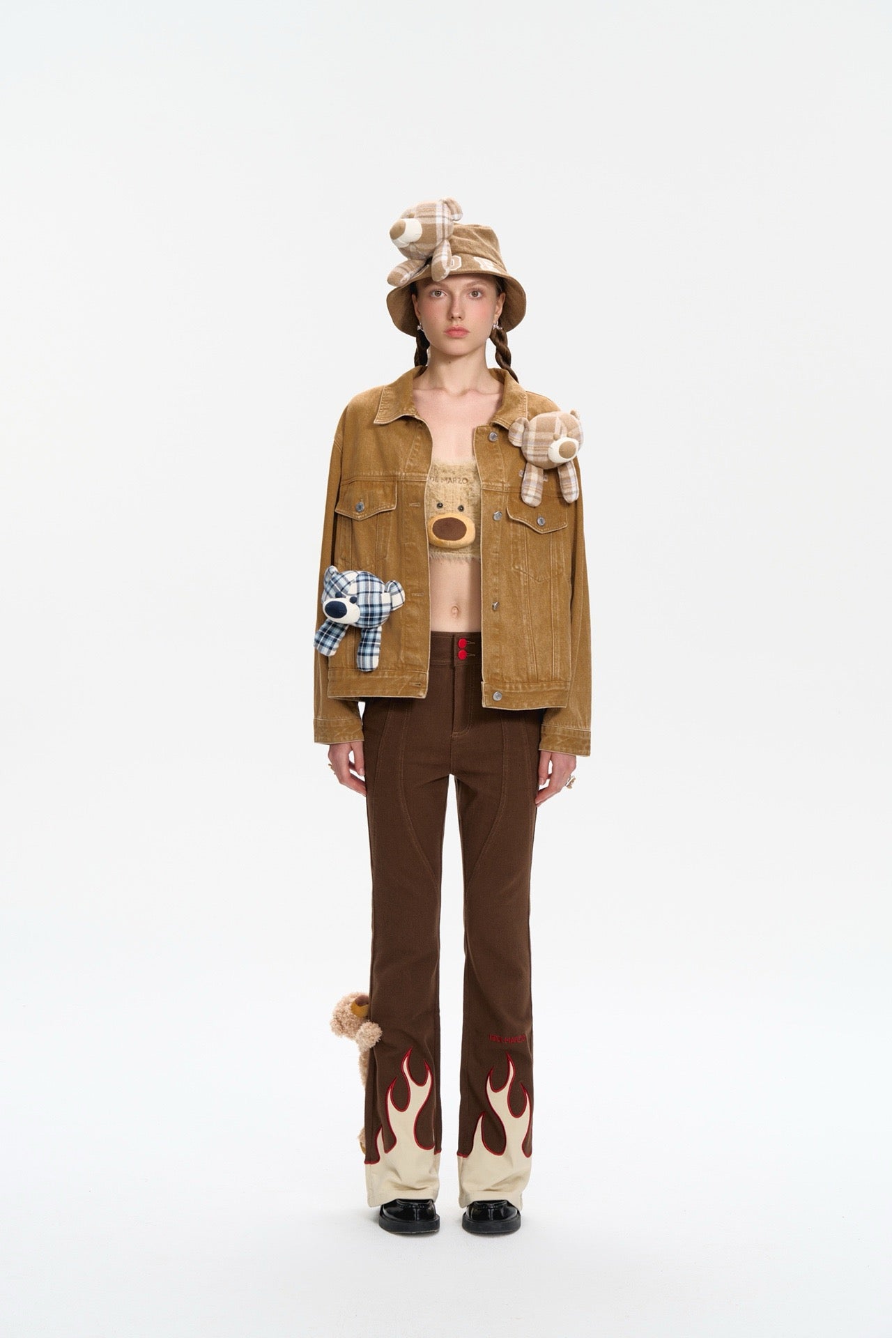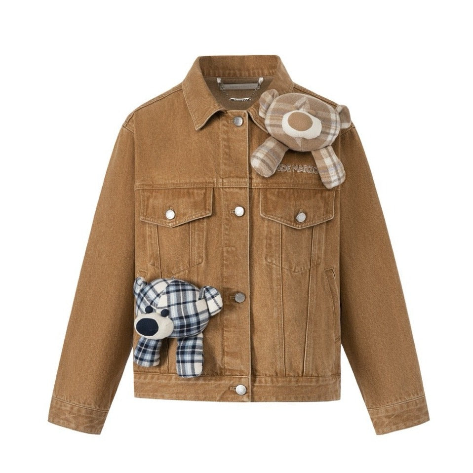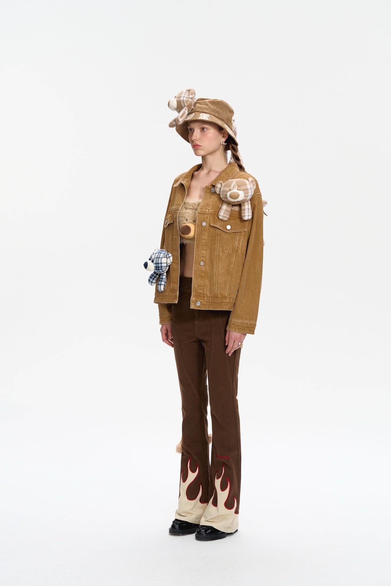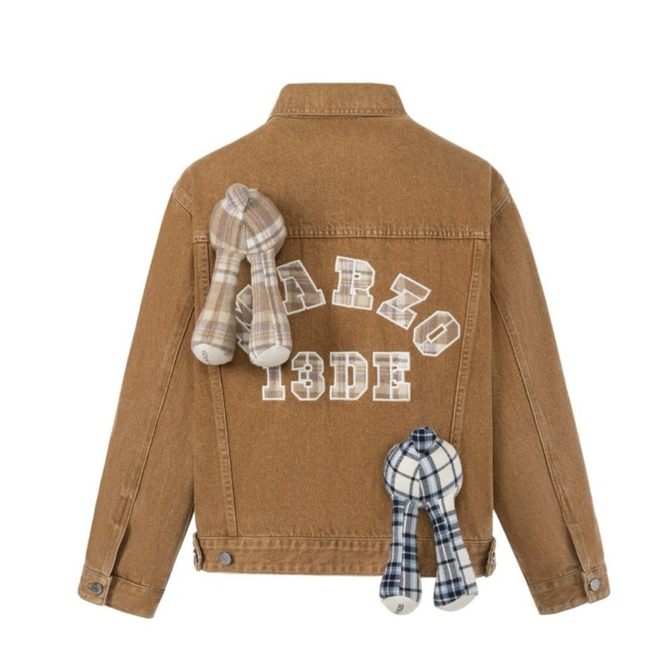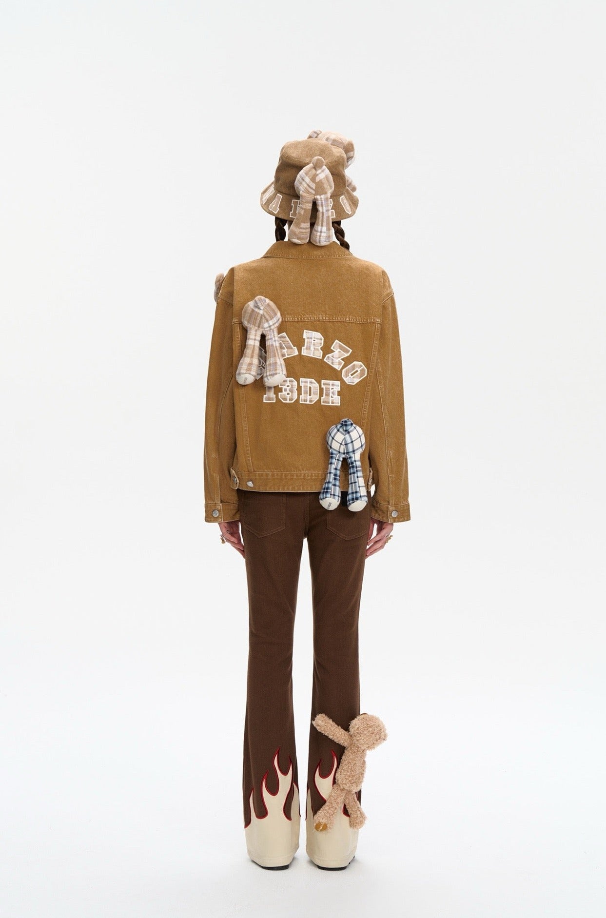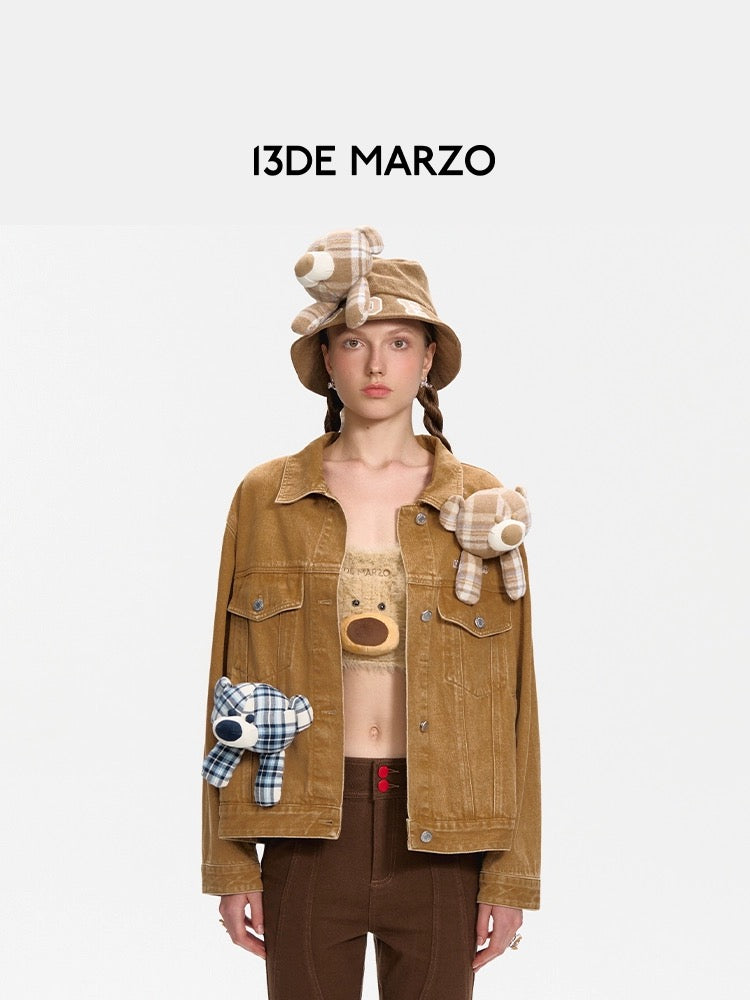 13DE MARZO Bear in Wormhole Denim Jacket Khaki