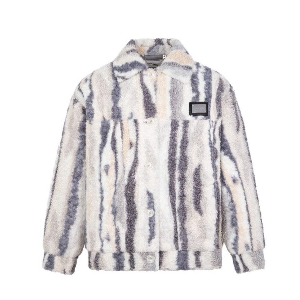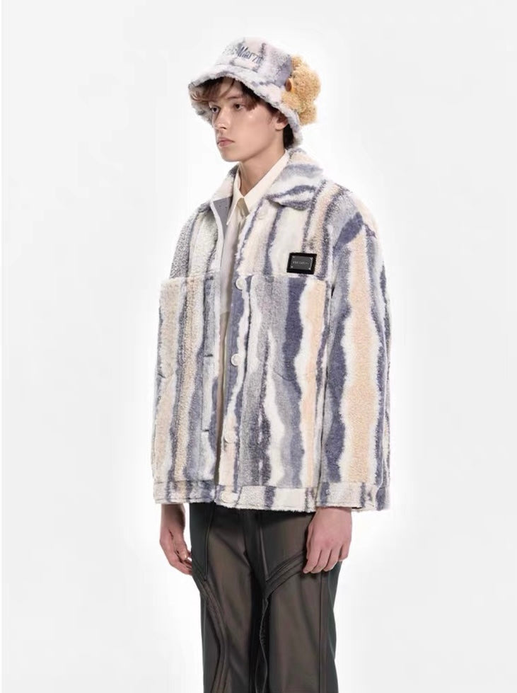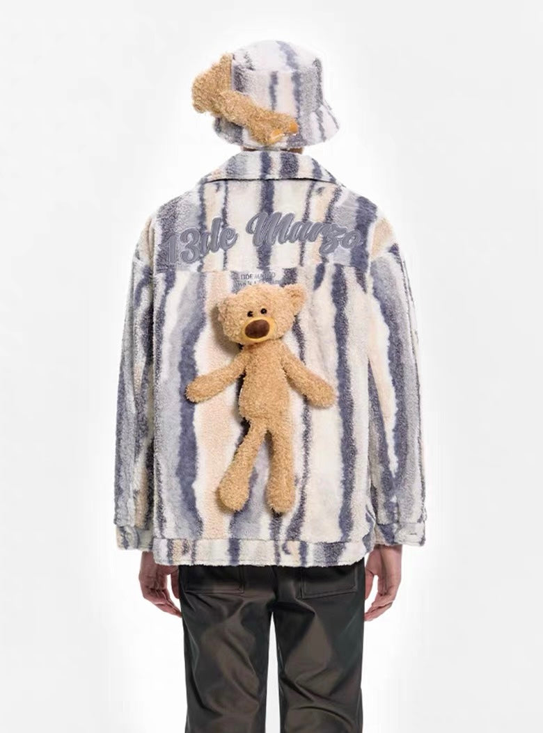 13DE MARZO Bear Stripe Fleece Coat Vulcan