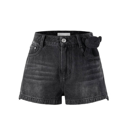 13DE MARZO Denim Frayed Embroidered Shorts Black