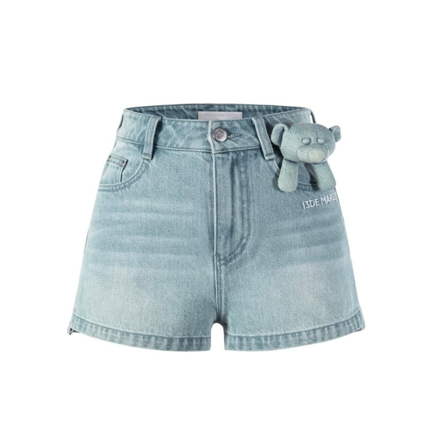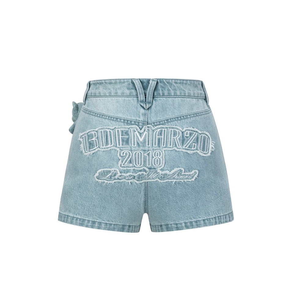 13DE MARZO Denim Frayed Embroidered Shorts Blue