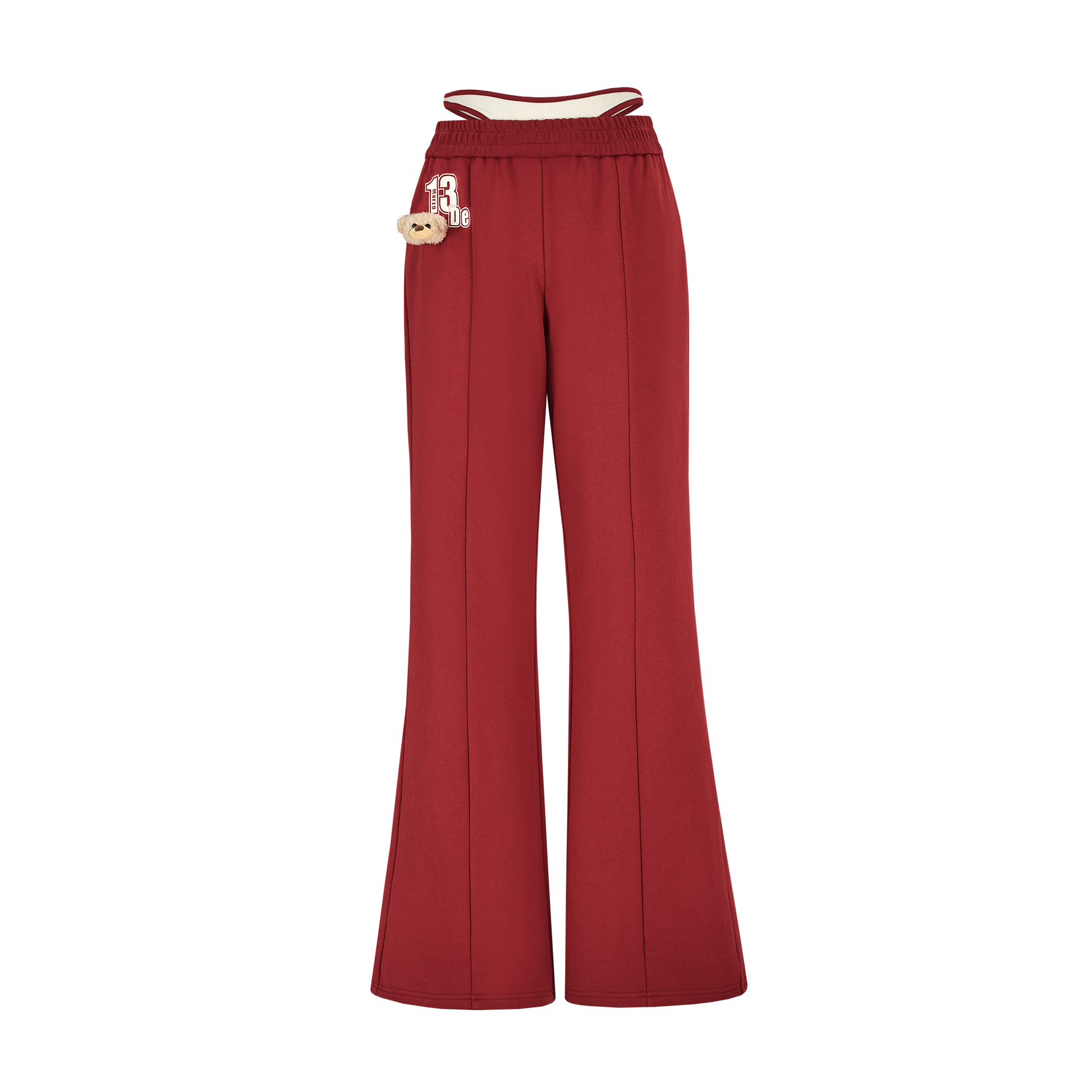 13DE MARZO Faux Two-Piece Vintage Sweat Pants Red