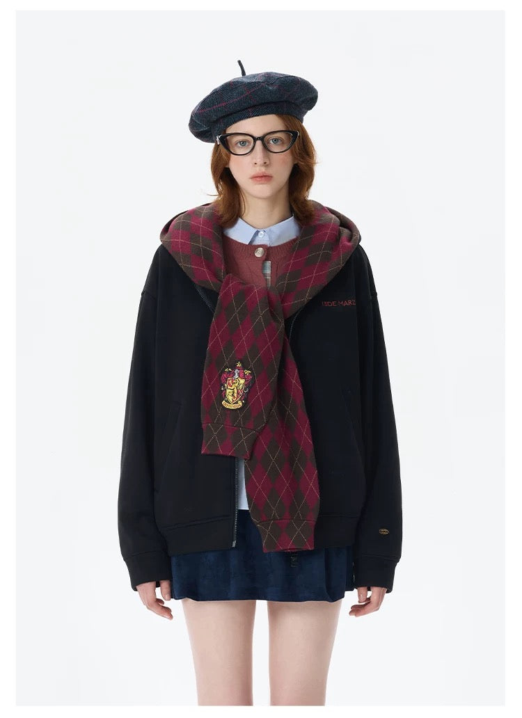 Harry Potter × 13DE MARZO Hogwarts Four Houses Bear Zipper Hoodie