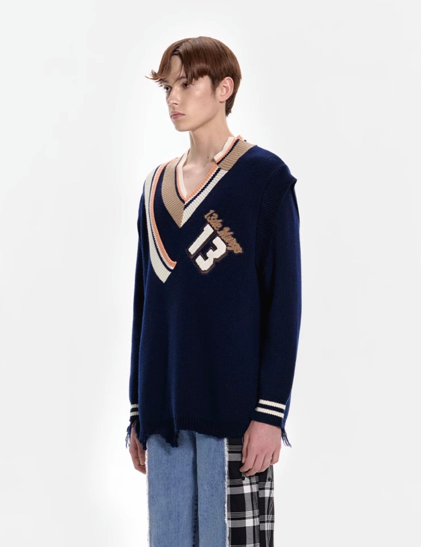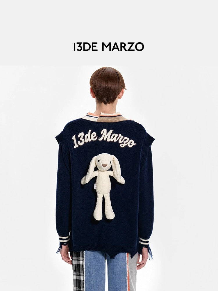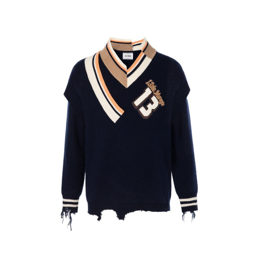13DE MARZO Malposition Logo Broken Sweater Evening Blue