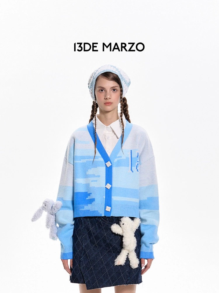 13DE MARZO Mosaic Faded Cardigan Skyride