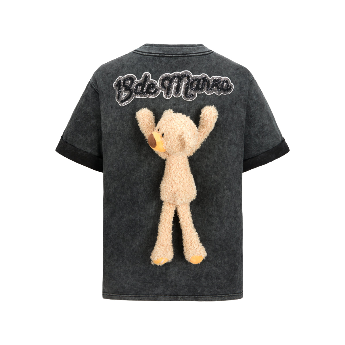 13DE MARZO Washed Sequins Logo T-Shirt Black