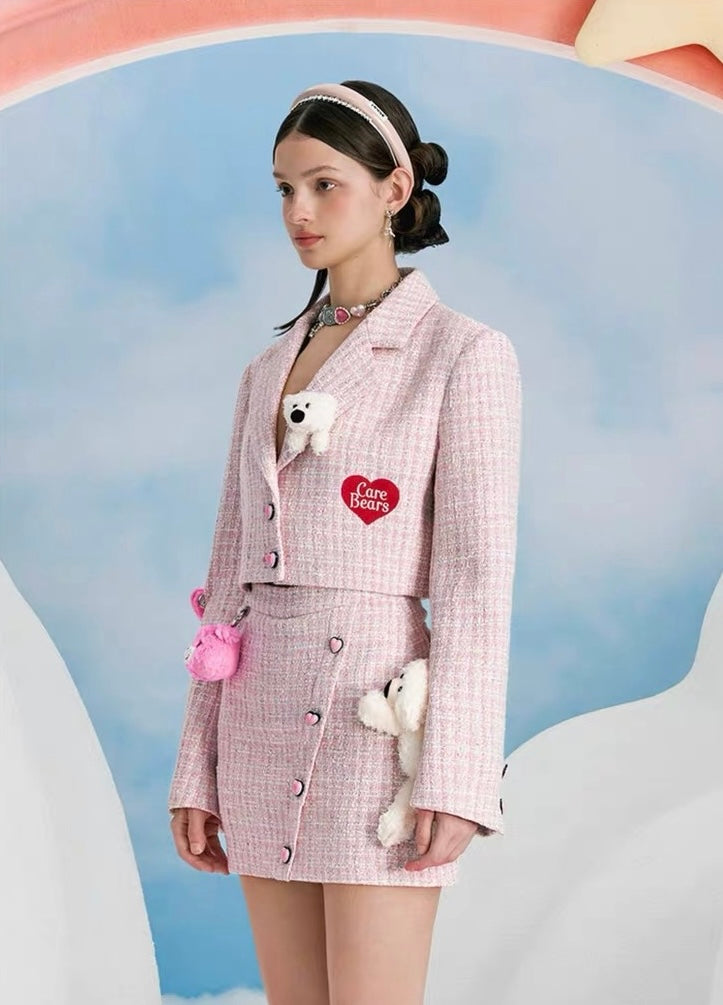 13DE MARZO x CARE BEARS Tweed Short Suit Promise Pink