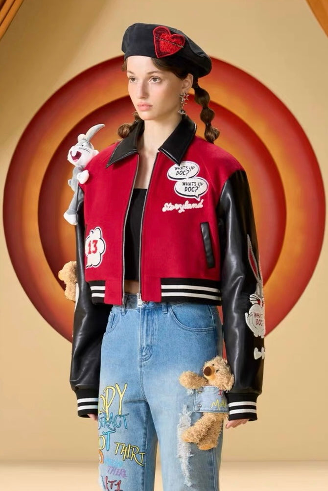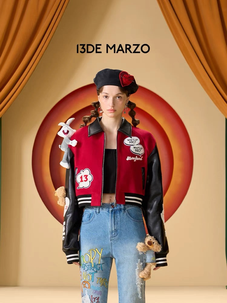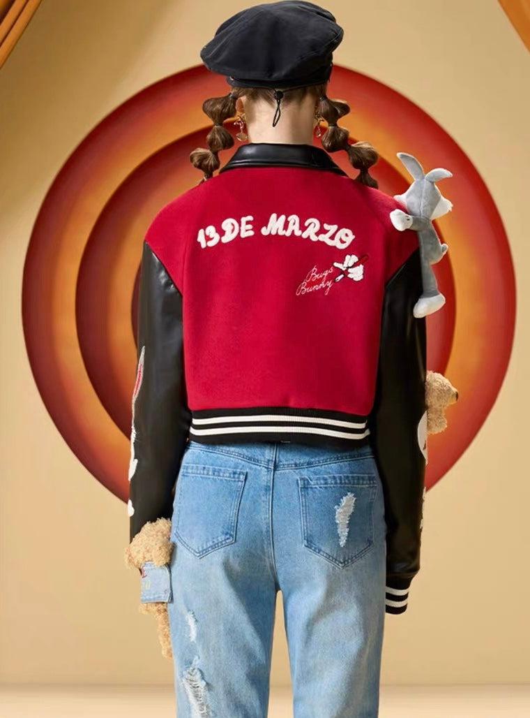 13DE MARZO x LOONEY TUNES Bugs Bunny Short Baseball Jacket Molten Lave