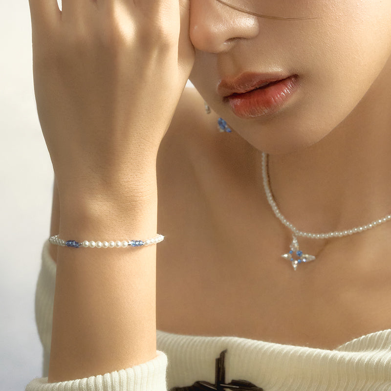 - Materials: Rhodium-plated black gallstones, glass, glass beads