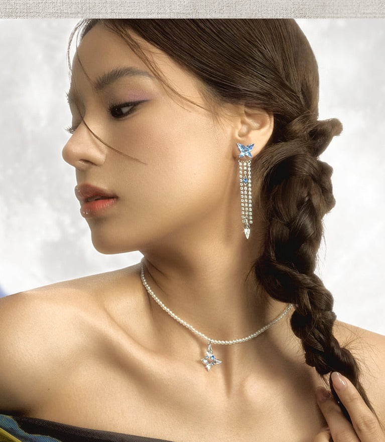 - Materials: Rhodium-plated copper, glass, synthetic cubic zirconia