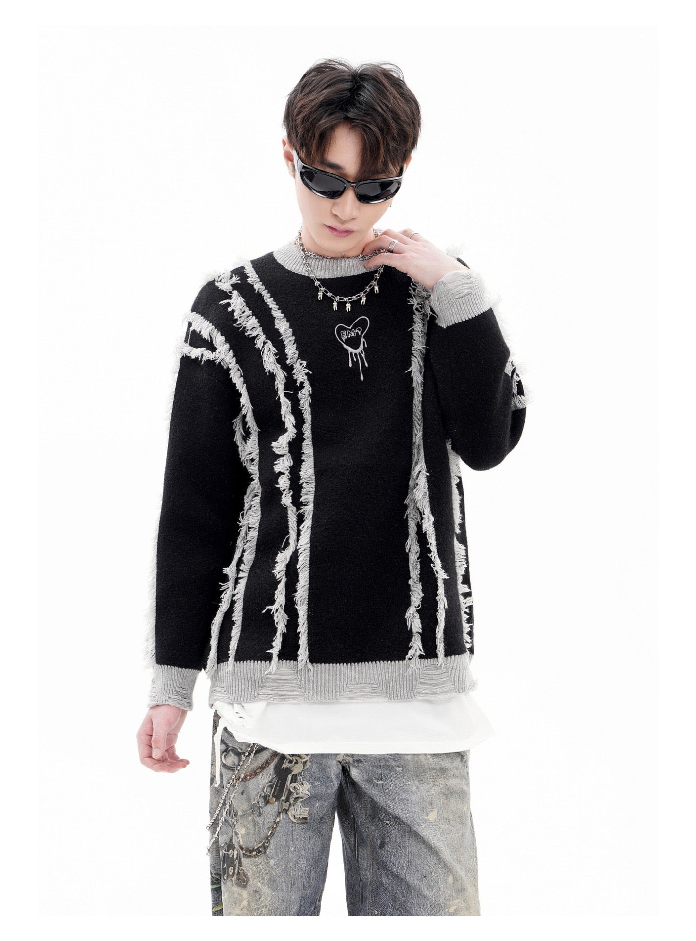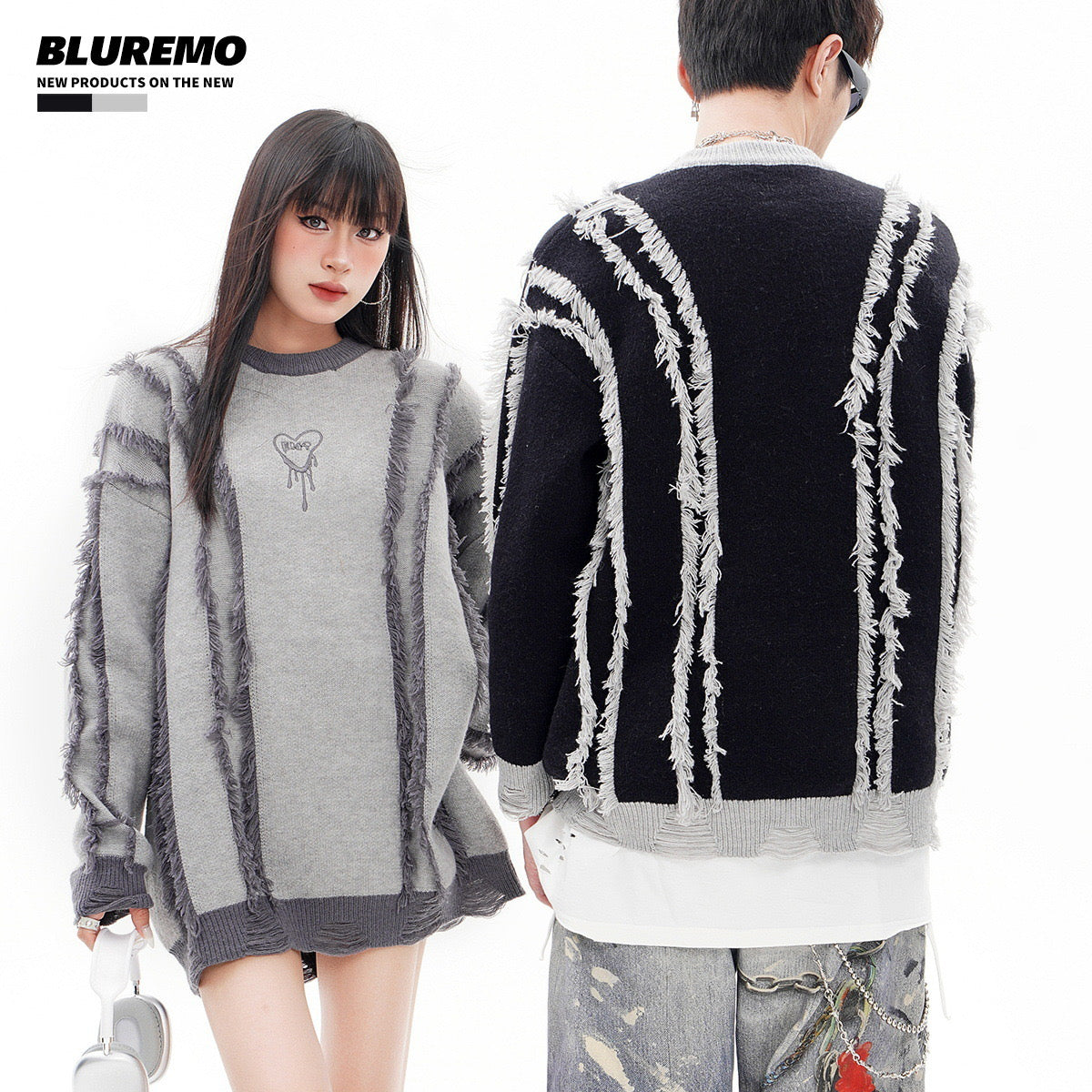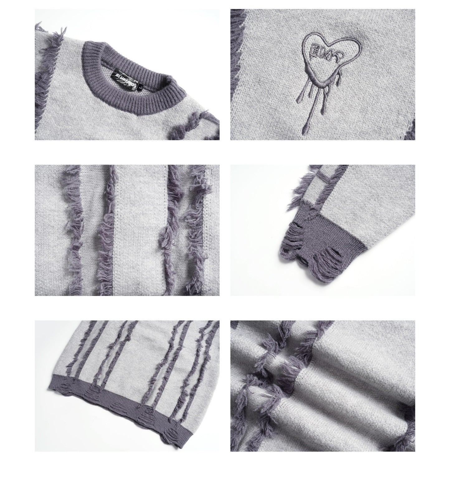 BLUREMO Tassel Colorblocked Crewneck Knitted Sweater