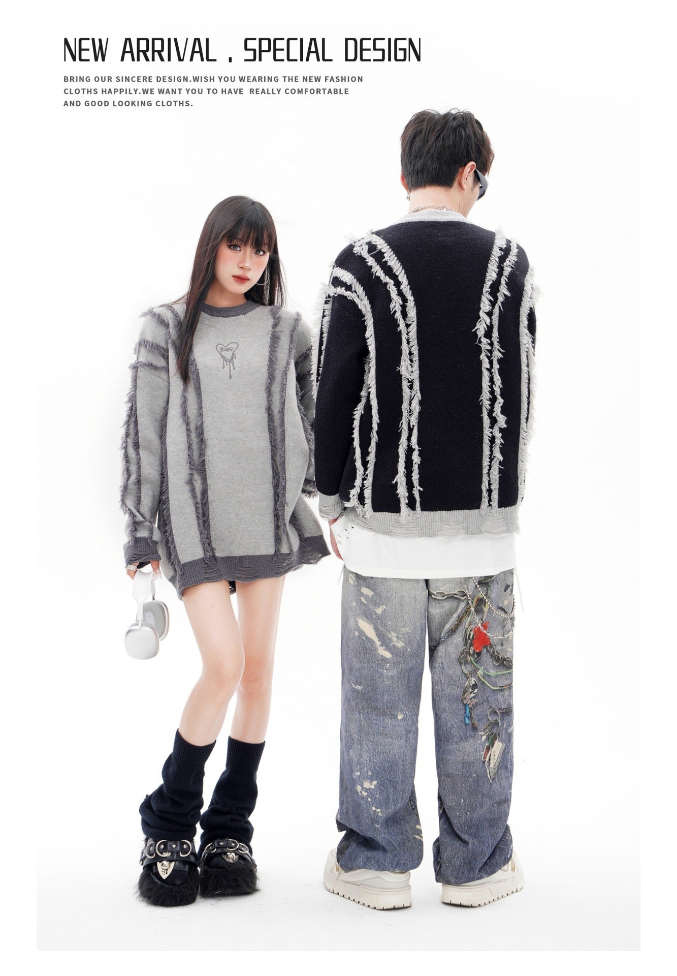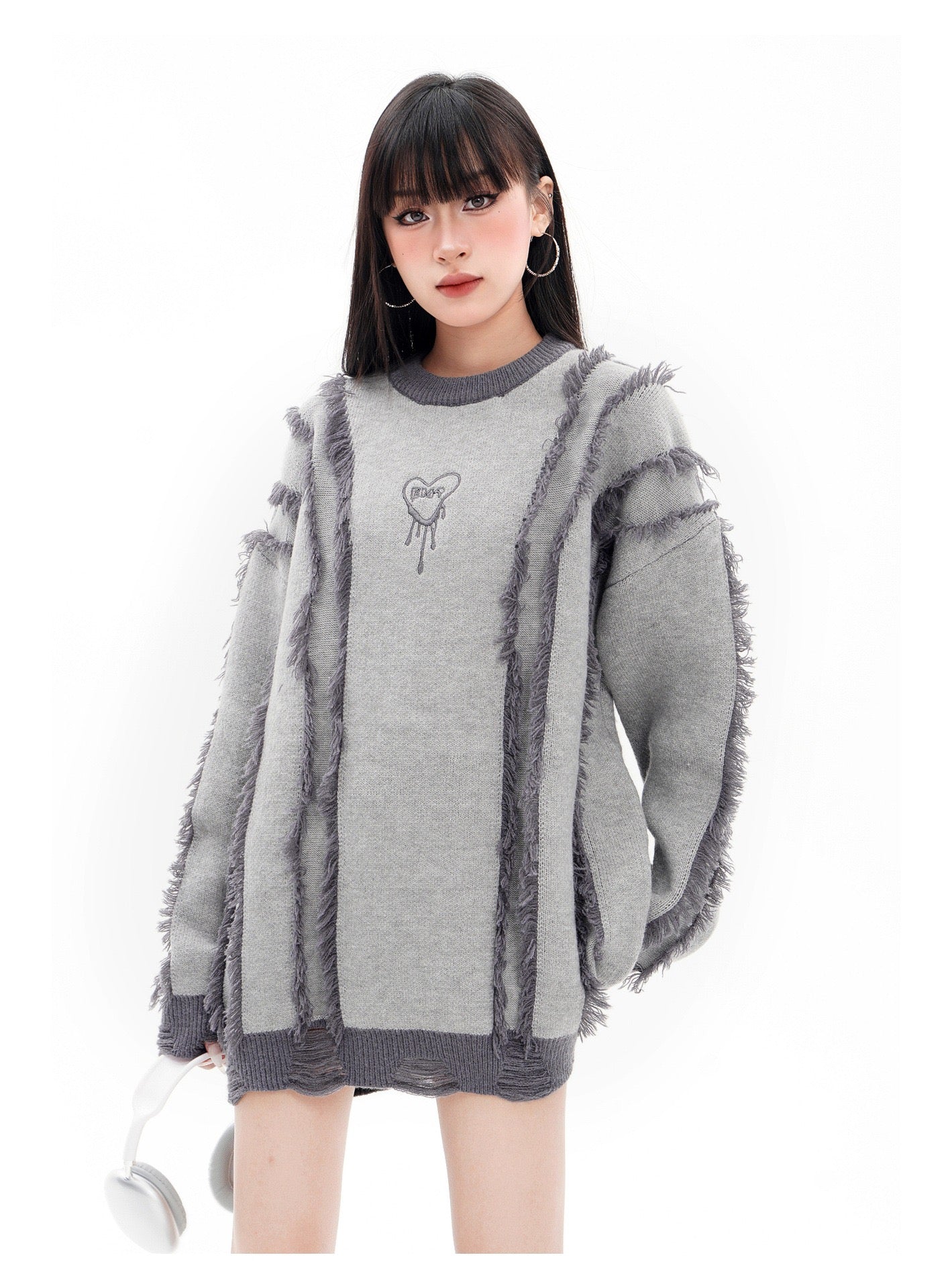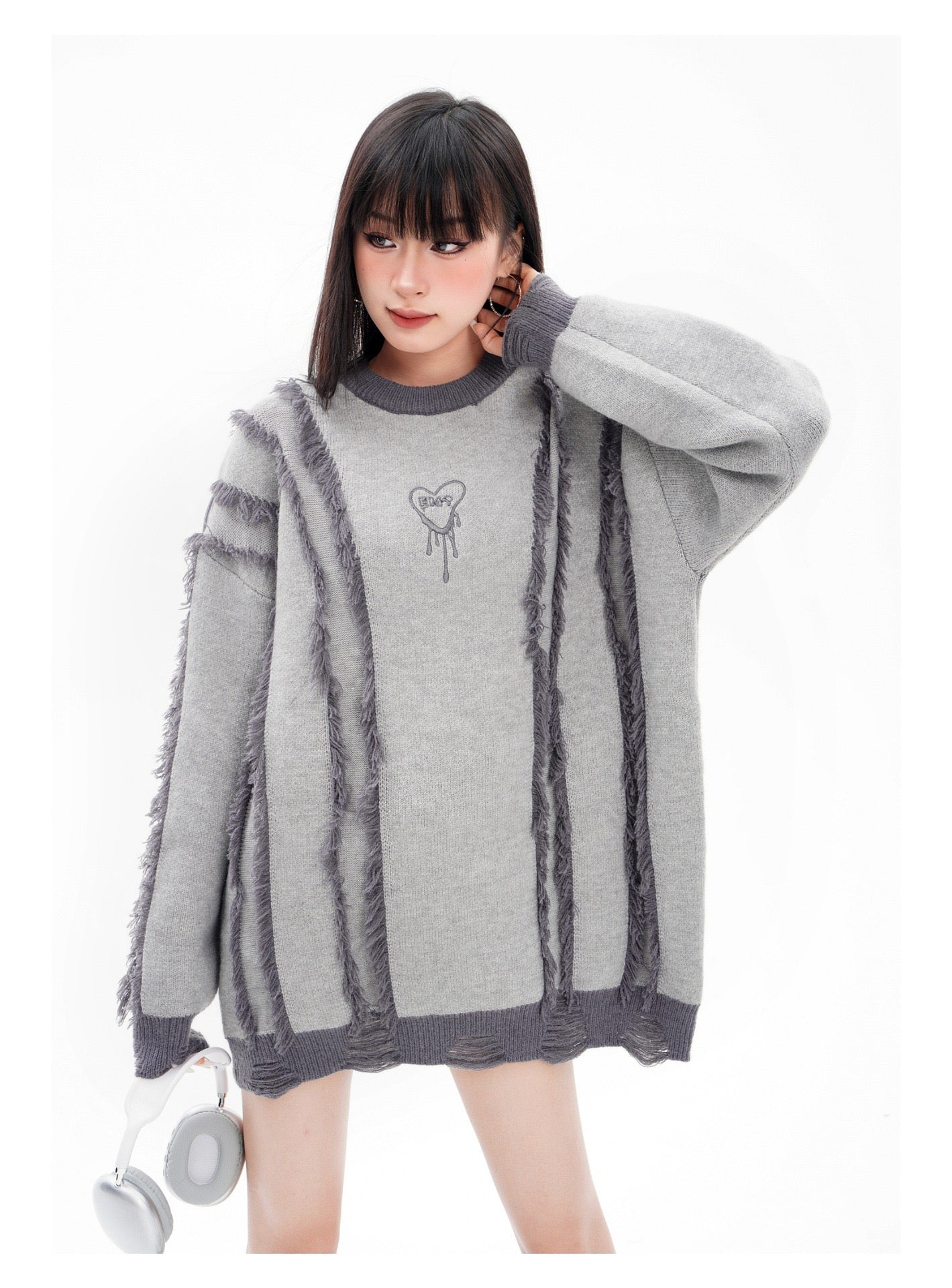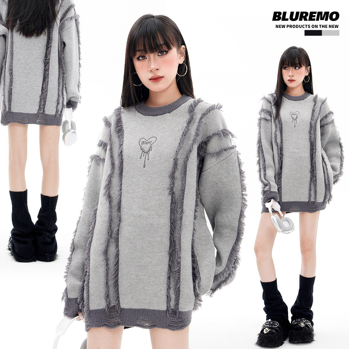 BLUREMO Tassel Colorblocked Crewneck Knitted Sweater