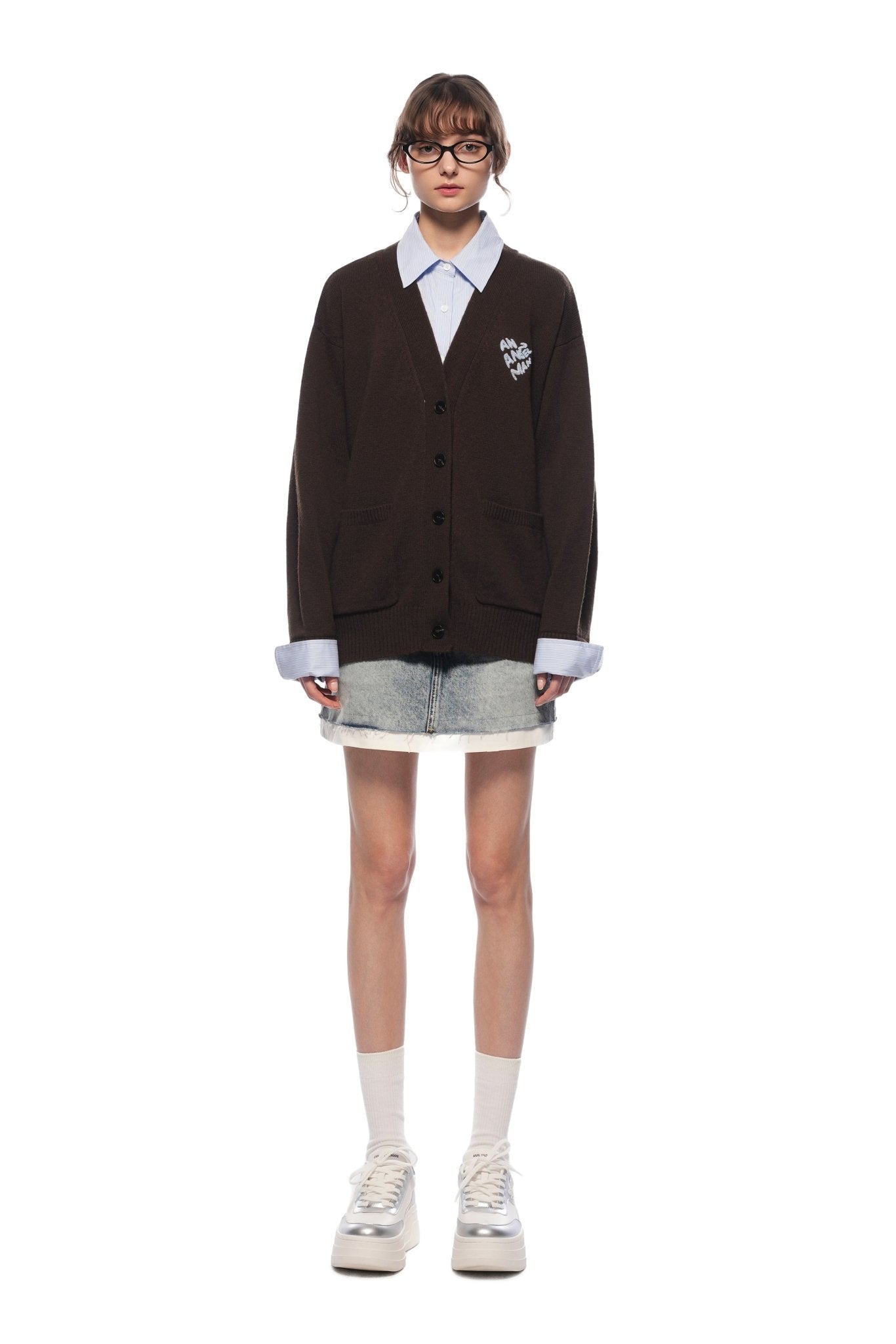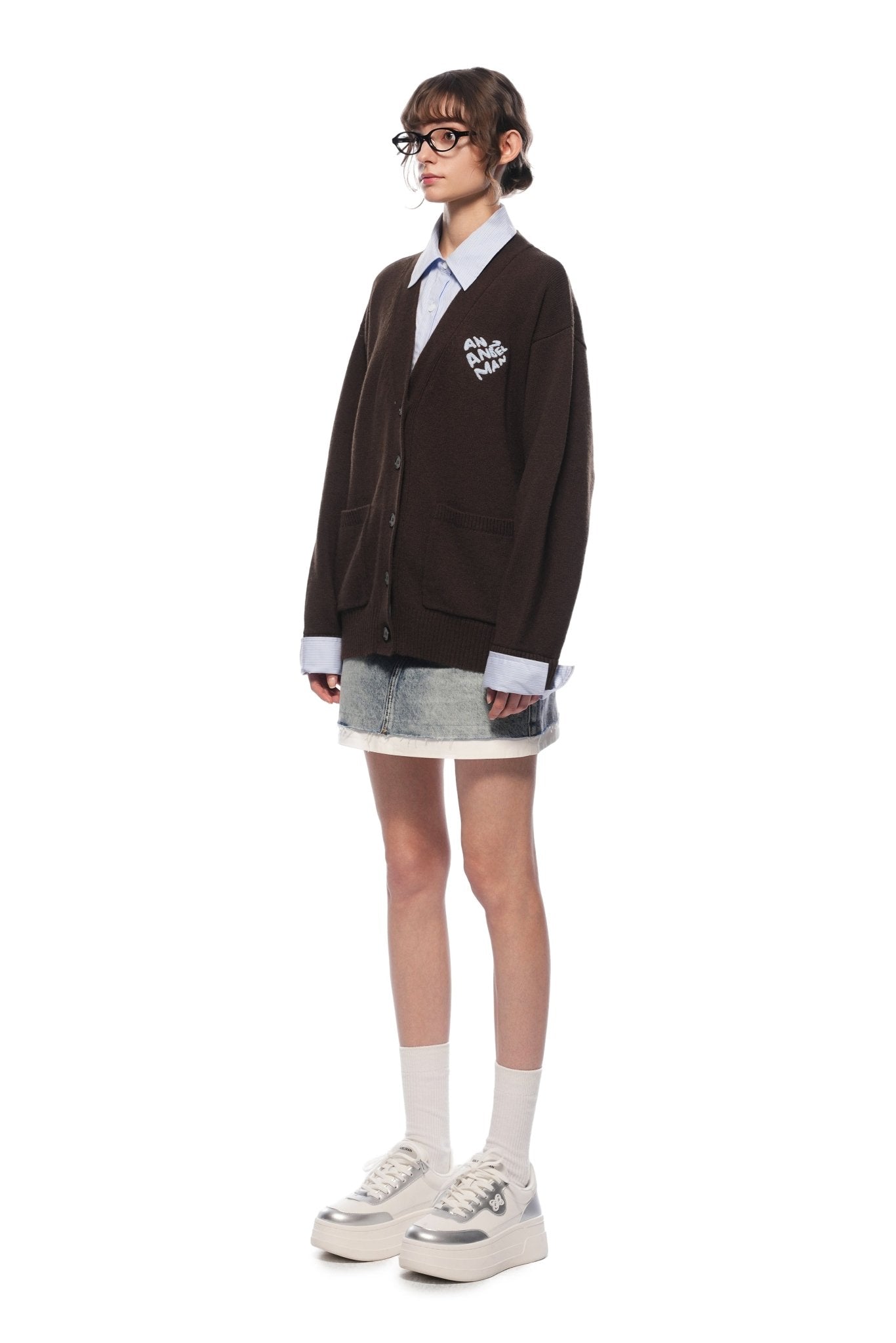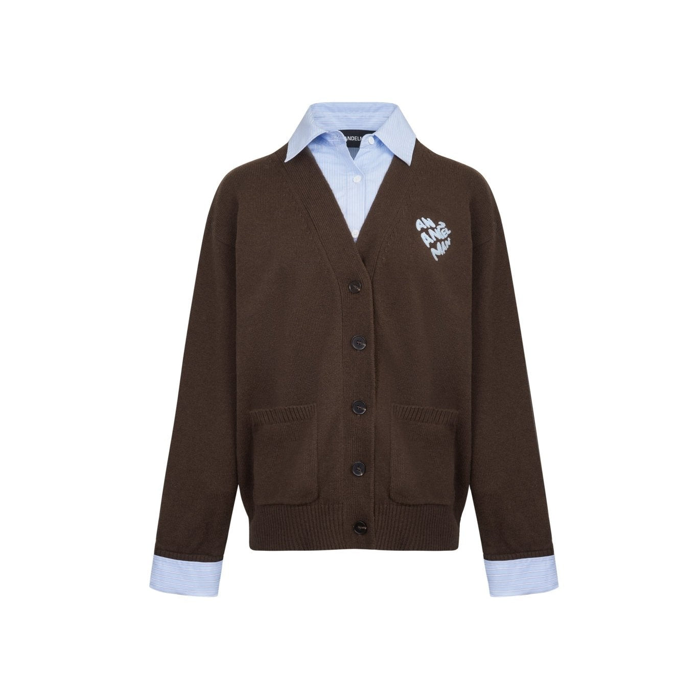 Ann Andelman Brown Faux Two-piece Knit Top With Patchwork Shirt