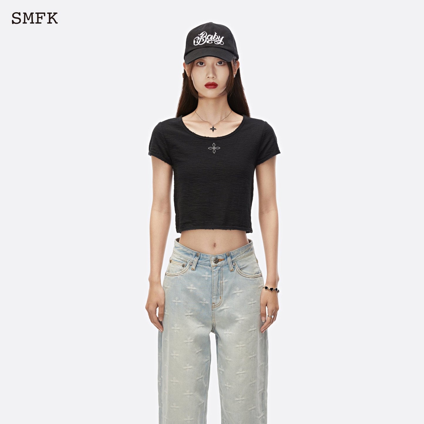 SMFK Compass Black Night Flower Biker Tee Midnight Black