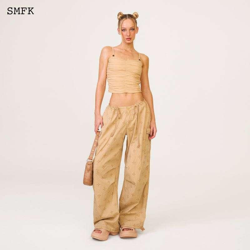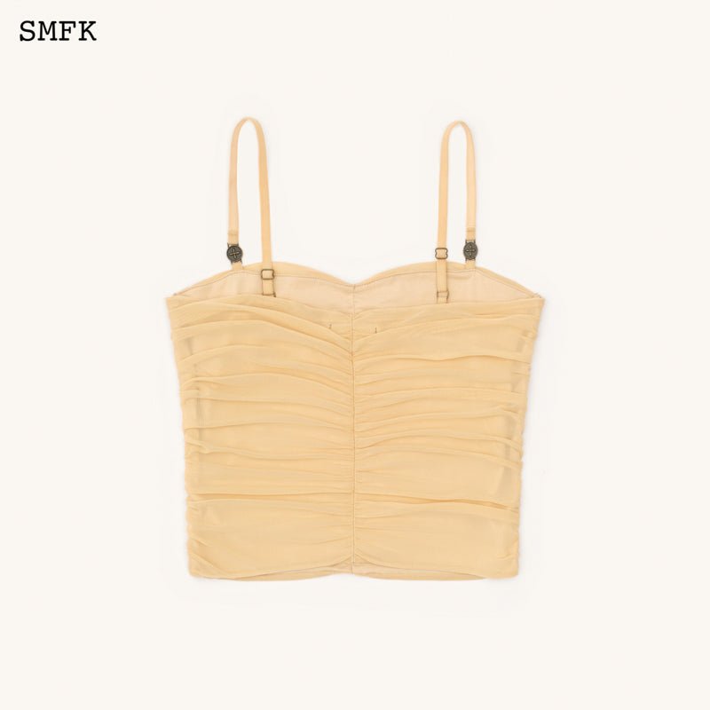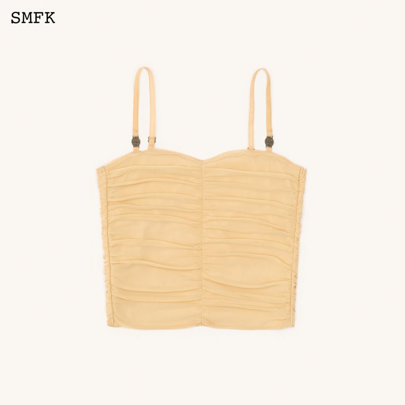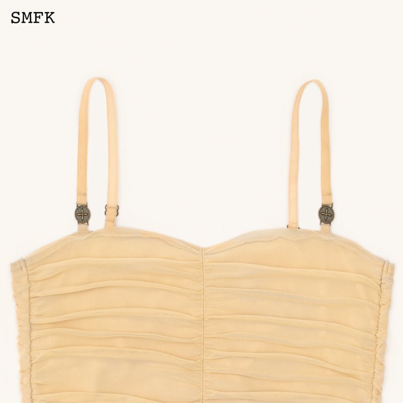 - Design: SMFK's ruffled camisole designed in 2022, with double-layer fabric. High-elastic sports mesh with hand-pinched pleating technique. Retro metal coin buckle.