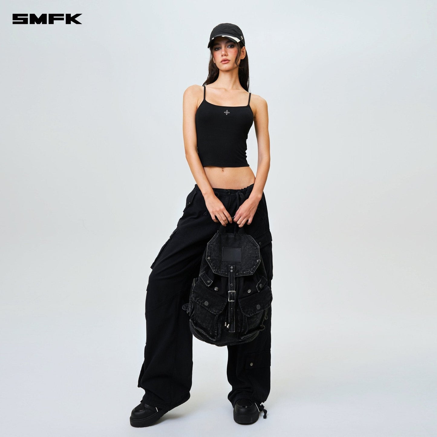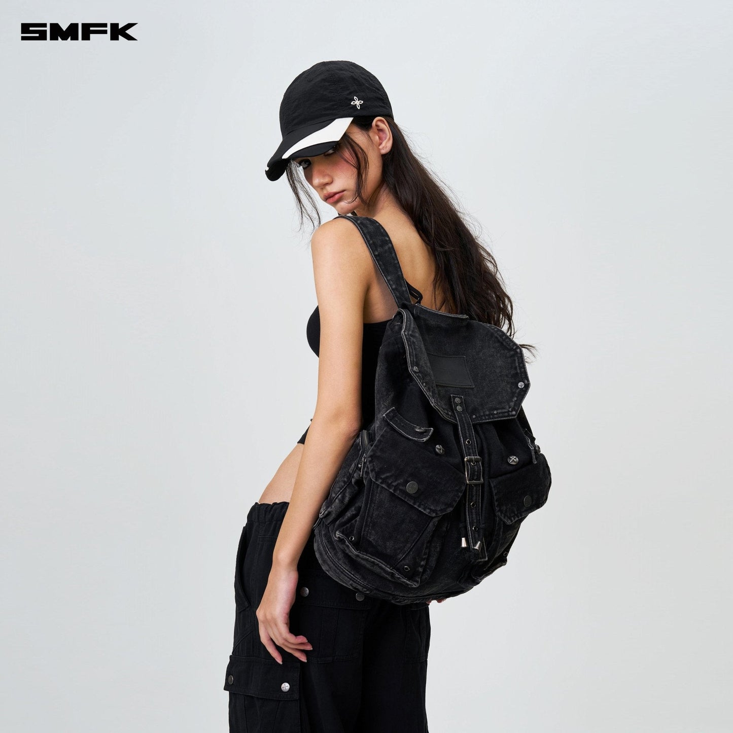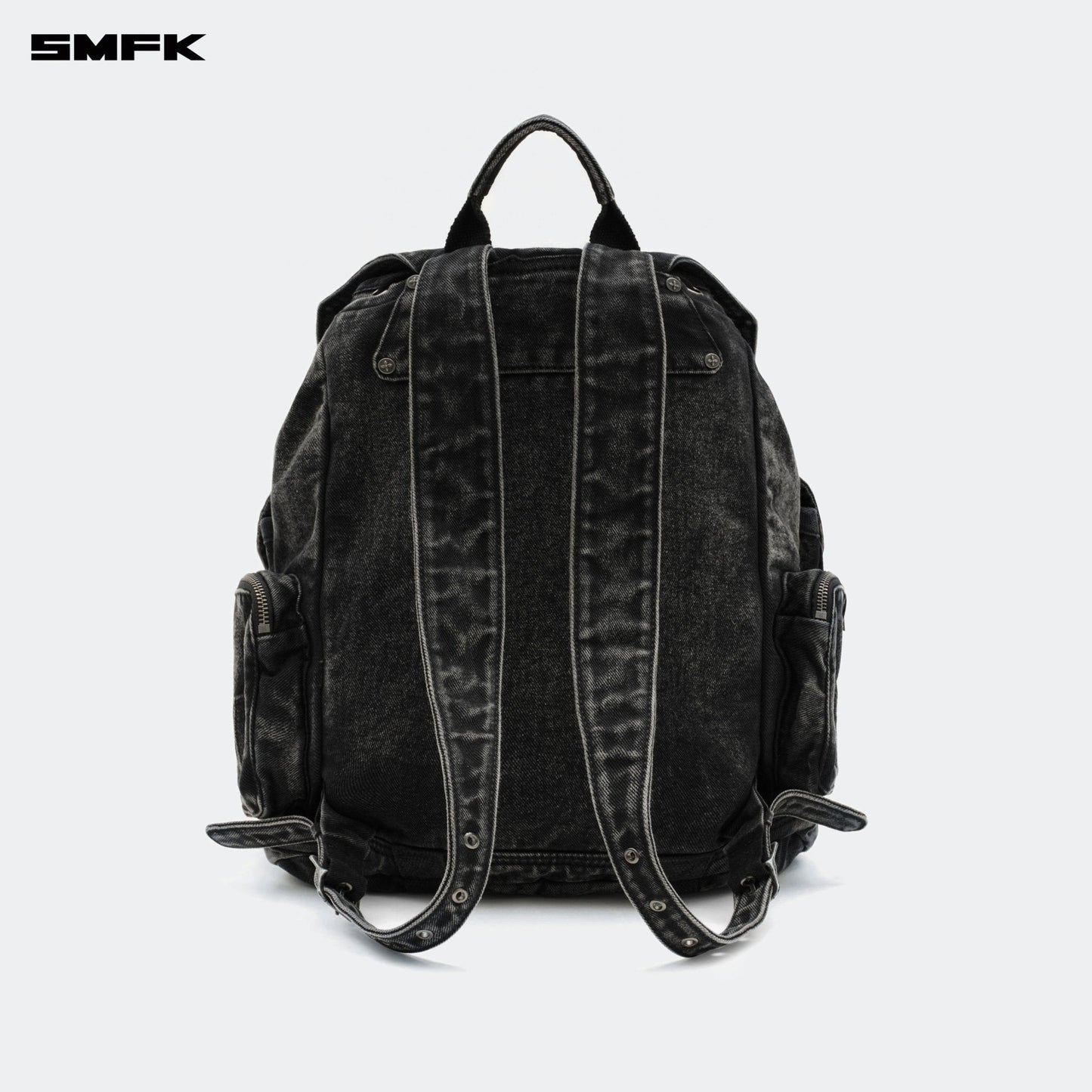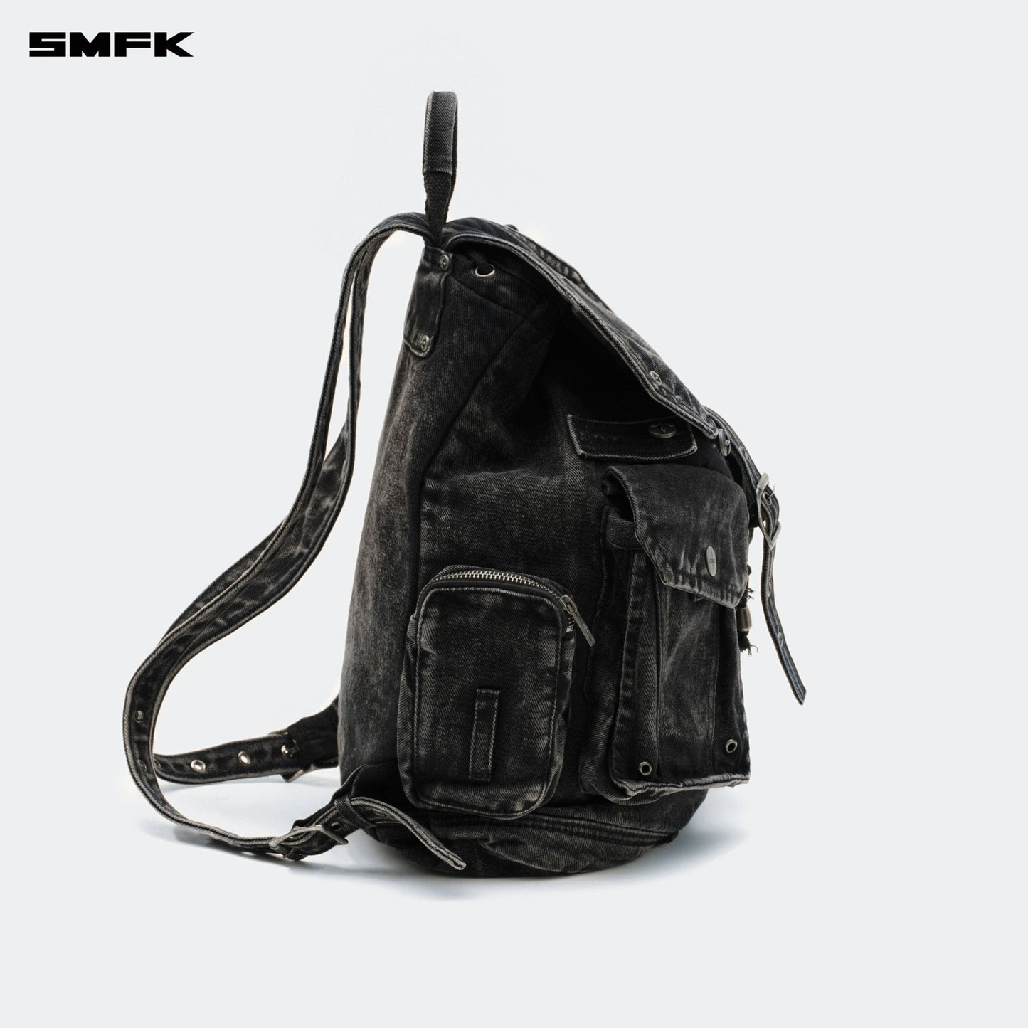 - Design: A fresh design for 2024 by SMFK, this denim backpack is a new addition to their collection. The design takes inspiration from common detailing found in denim jackets and shorts, allowing for adjustable capacity. Features a three-dimensional external pocket, echoing the workwear pocket style from SMFK's workwear collection.