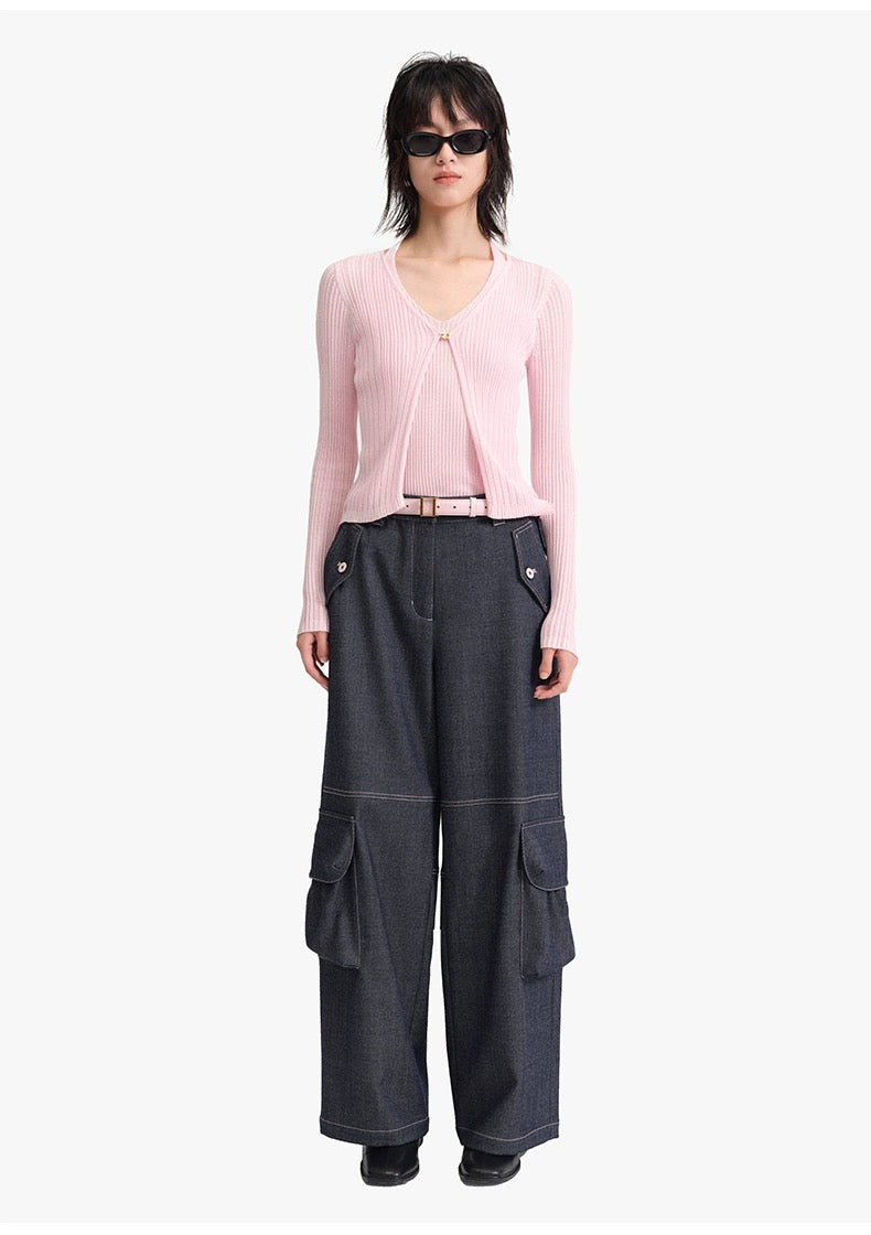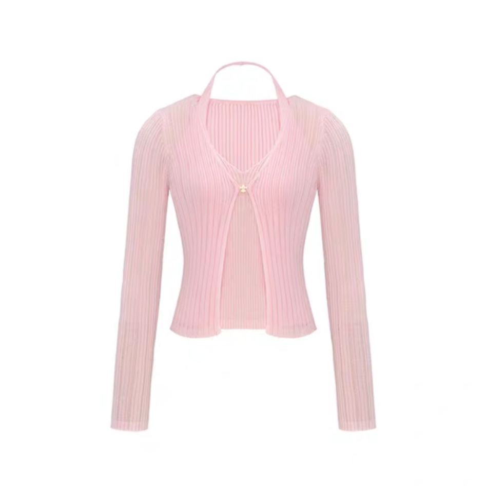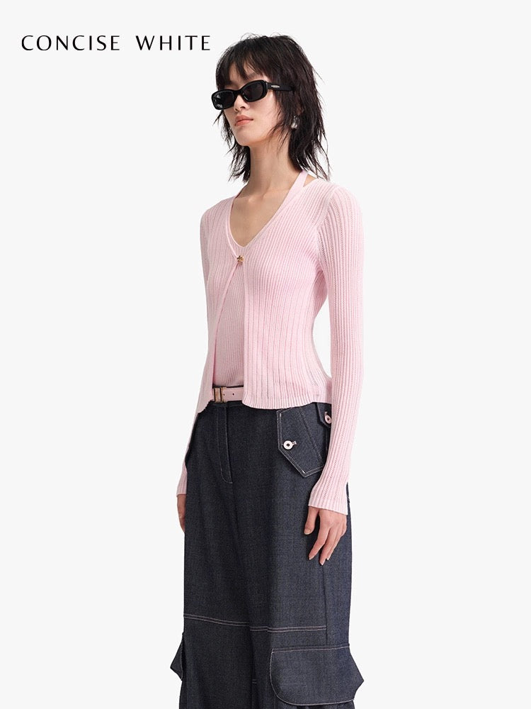 Concise-White Iris Fake Two-Piece Knitted Top Pink