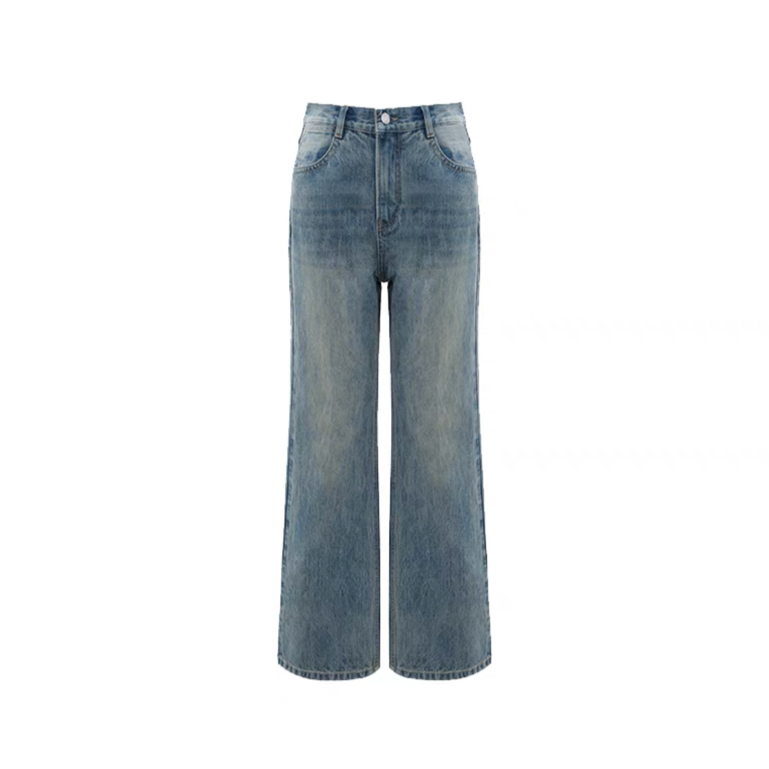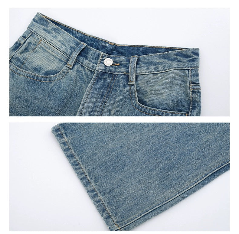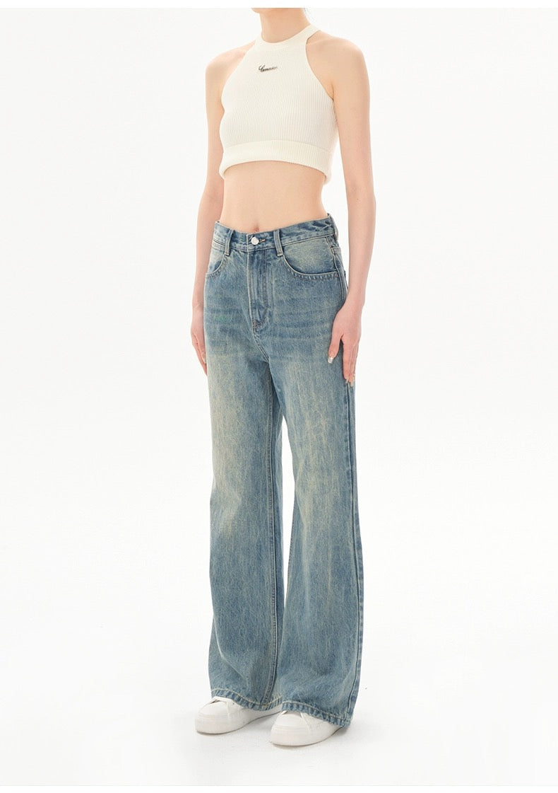 Concise-White Versatile Washed Straight Leg Jeans Vintage Blue