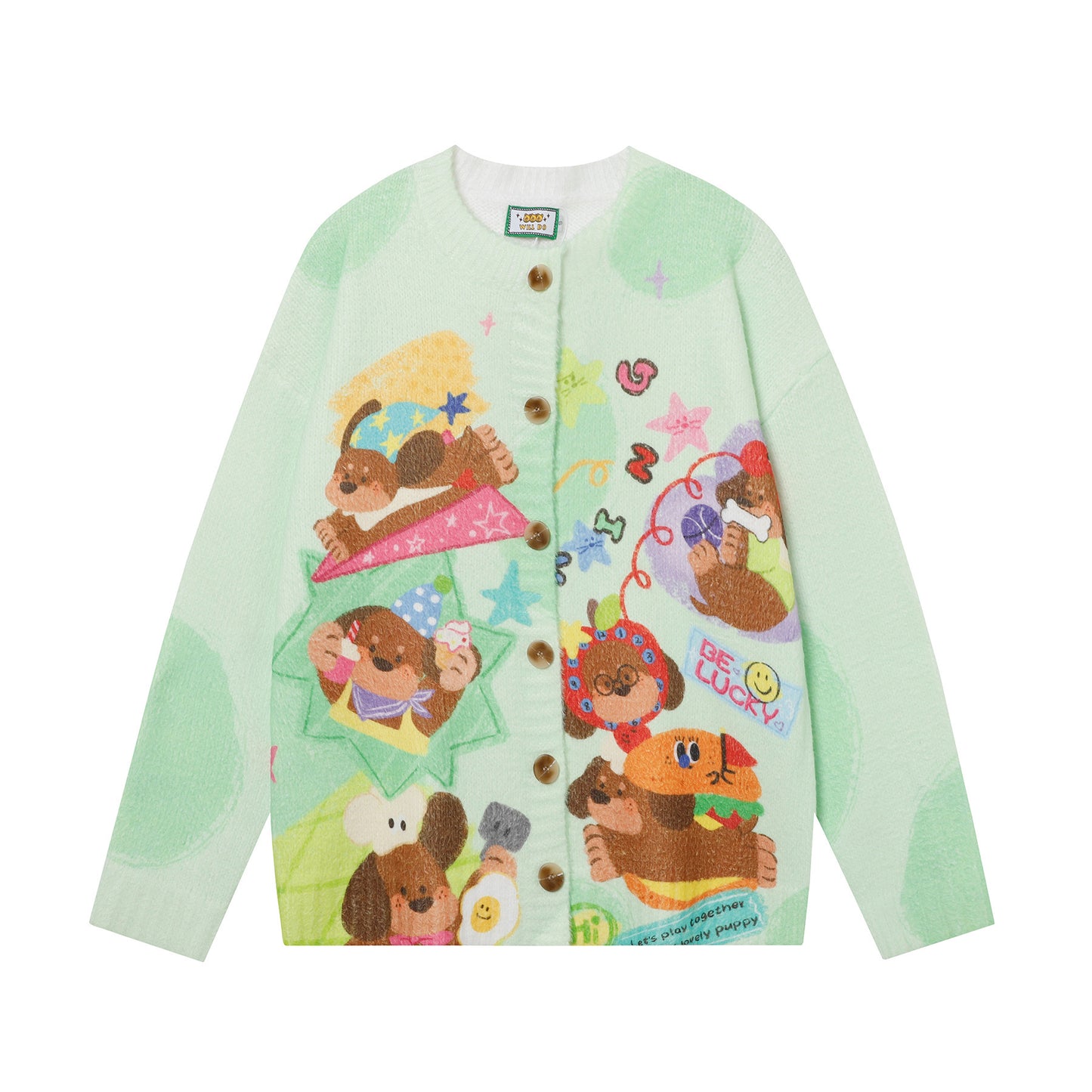 FX Retro Cutie Puppy 'Be Lucky' Casual Cardigan