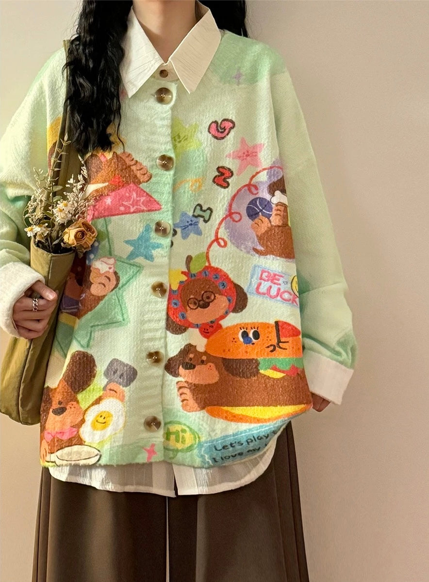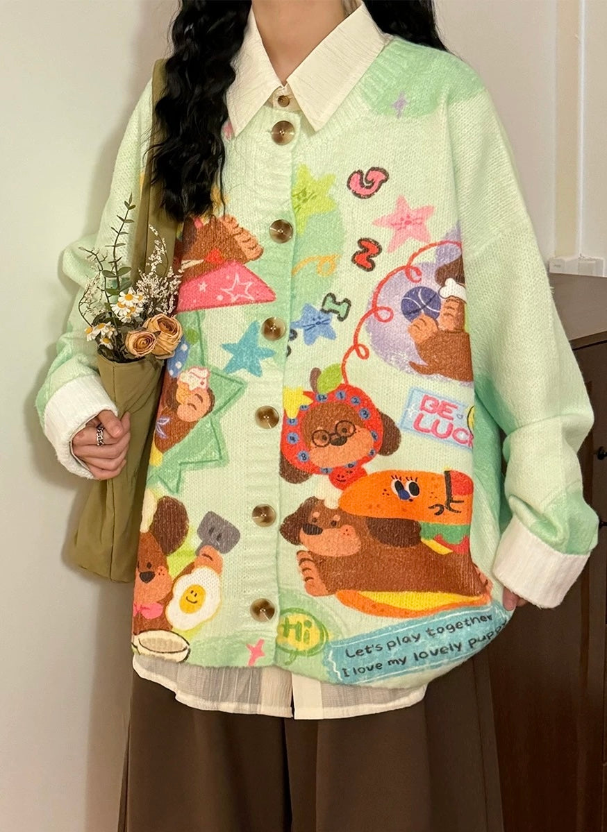 ✦FX✦ Retro Cutie Puppy 'Be Lucky' Casual Cardigan
