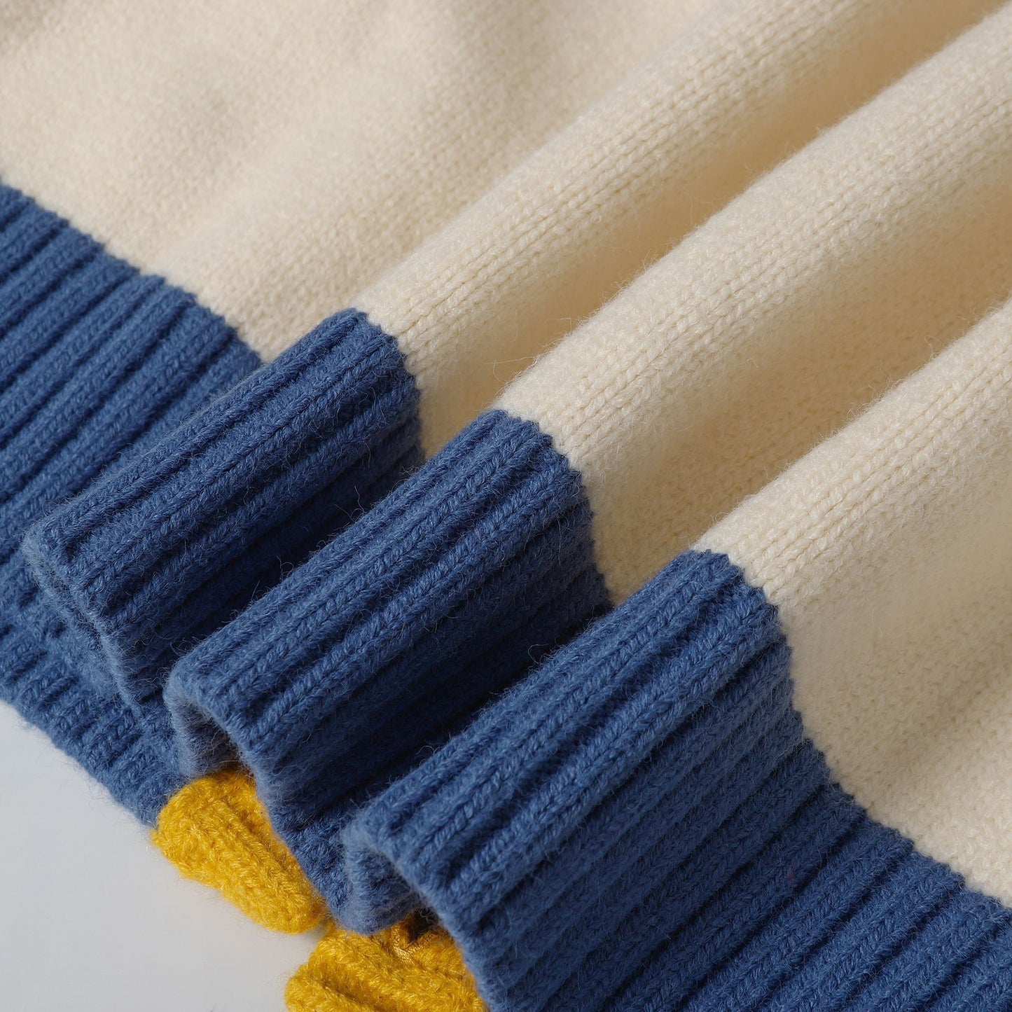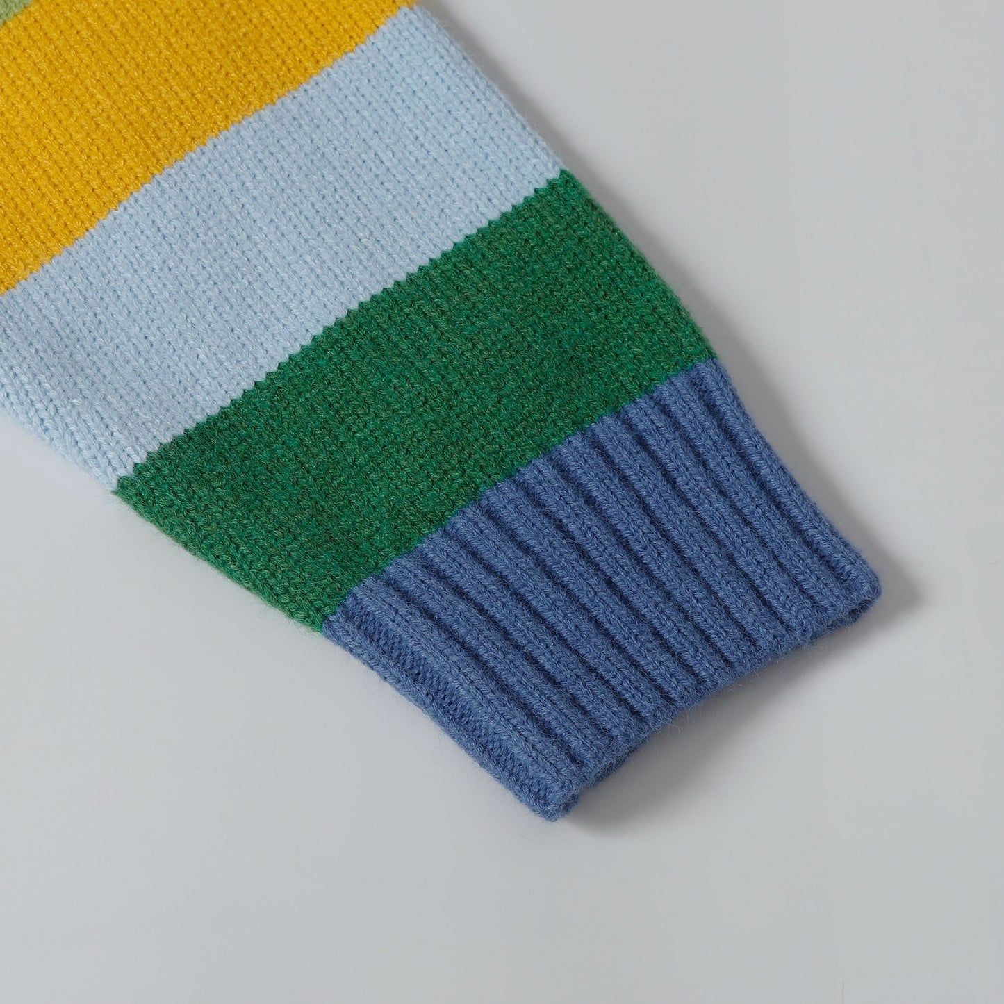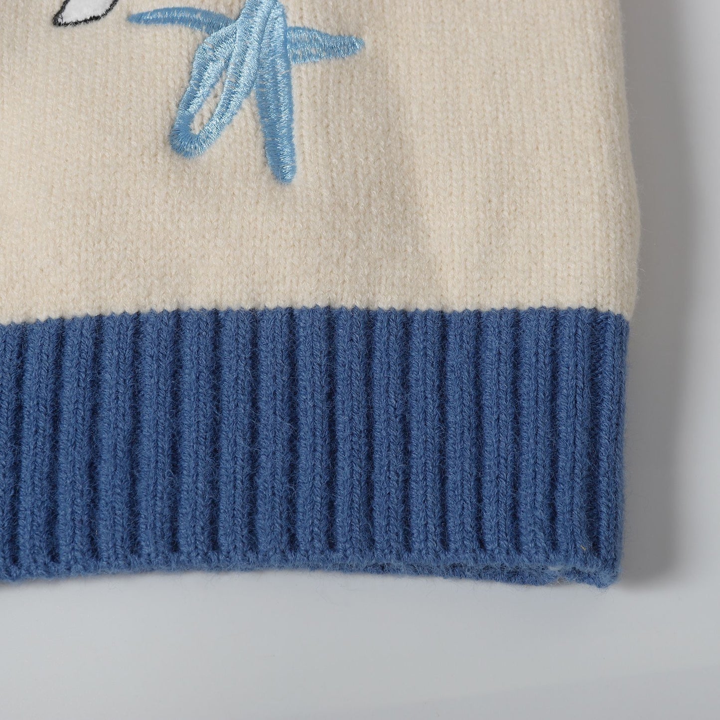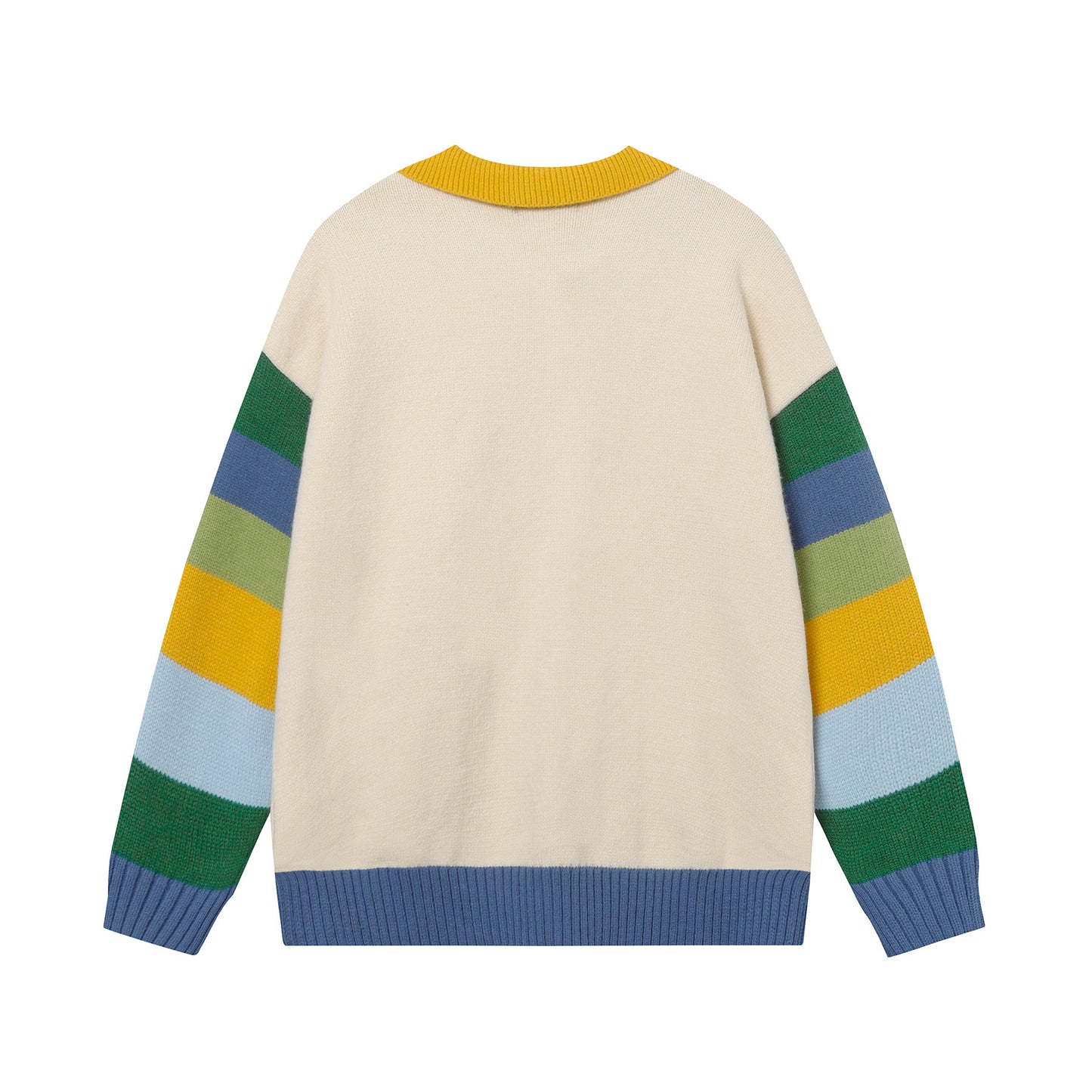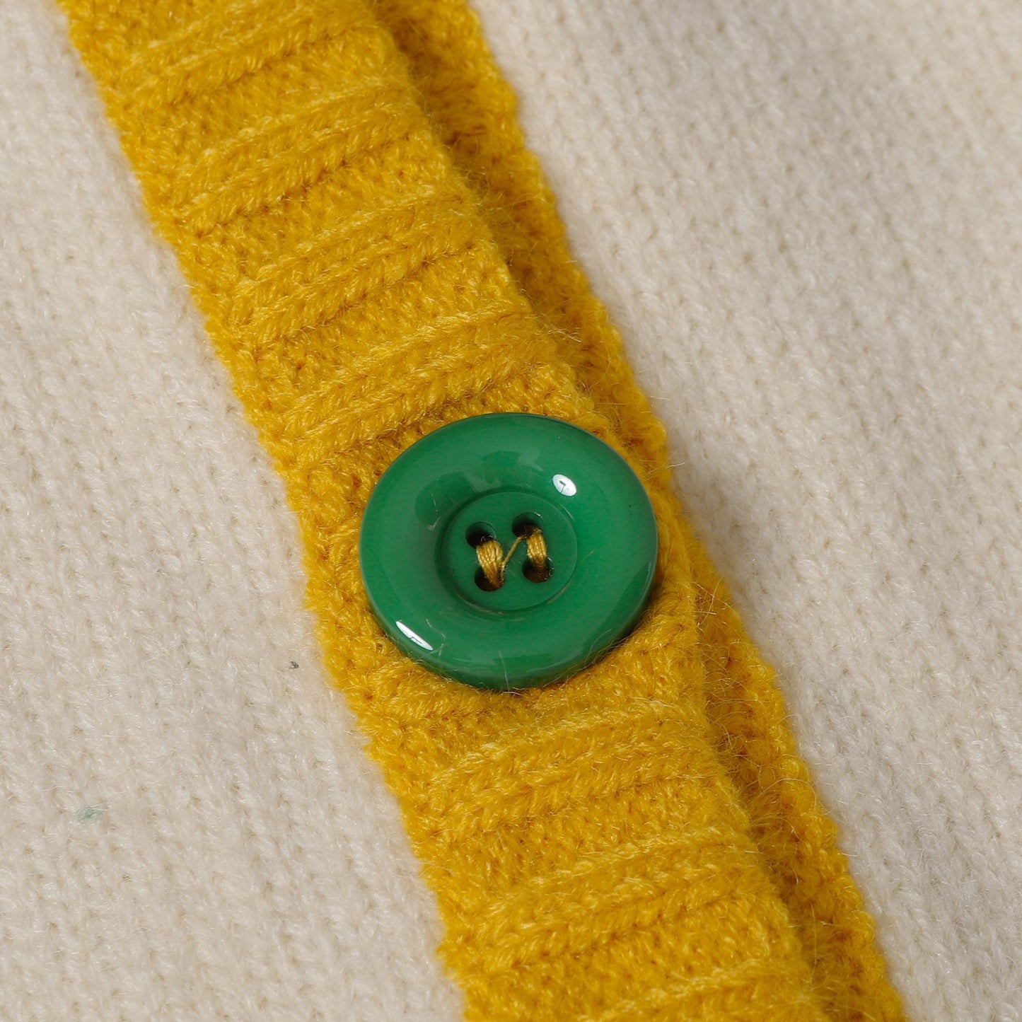 FX Retro Kitten Embroidered Striped Knit Cardigan Beige