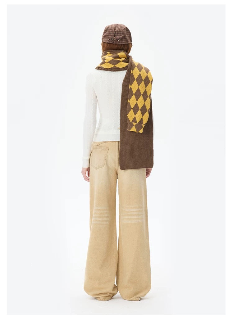 Diamonf-shaped Checkered Scarf: 29.8% Acrylic, 29.1% Polyester, 22.5% Viscose, 18.6% Nylon