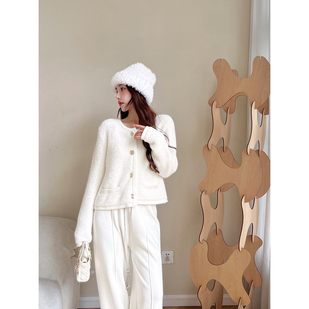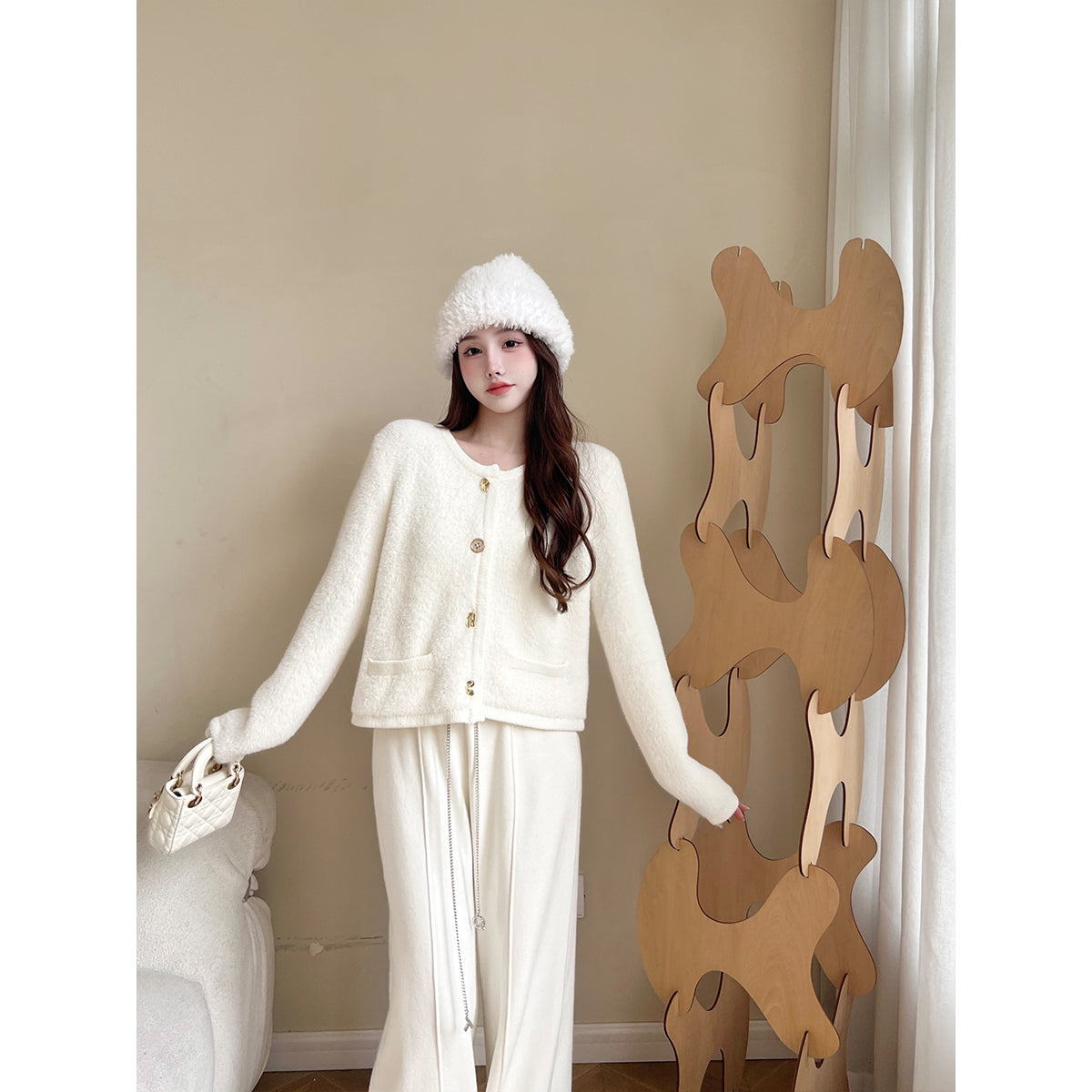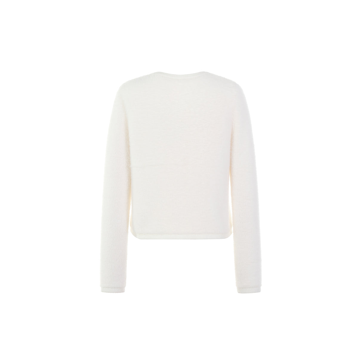 THREE QUARTERS Irregular Mental Button Knit Cardigan White