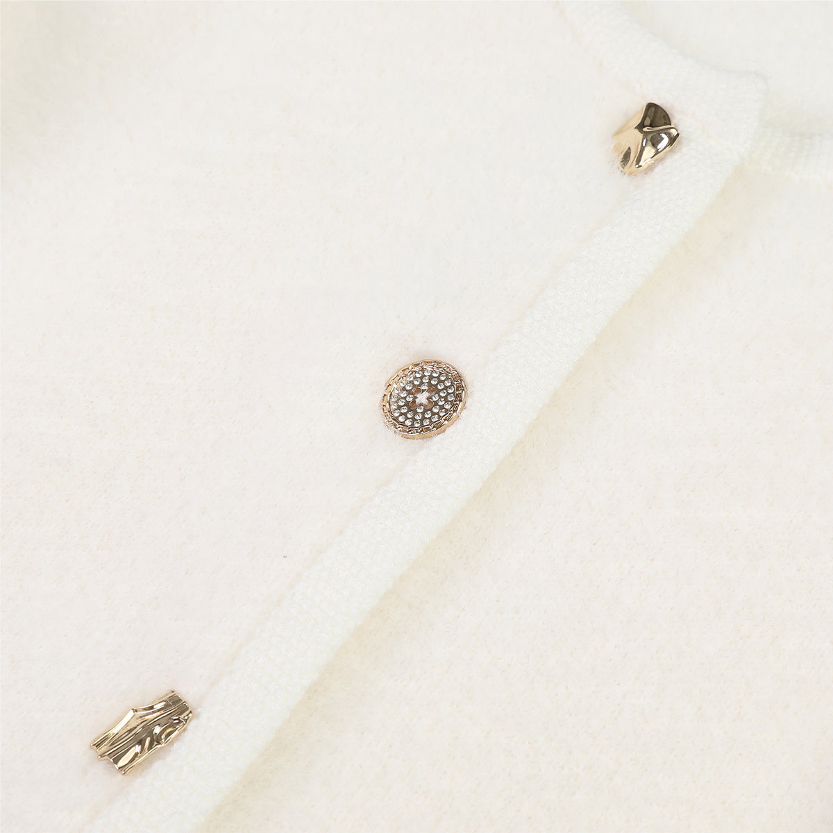 Three Quarters Irregular Mental Button Knit Cardigan White