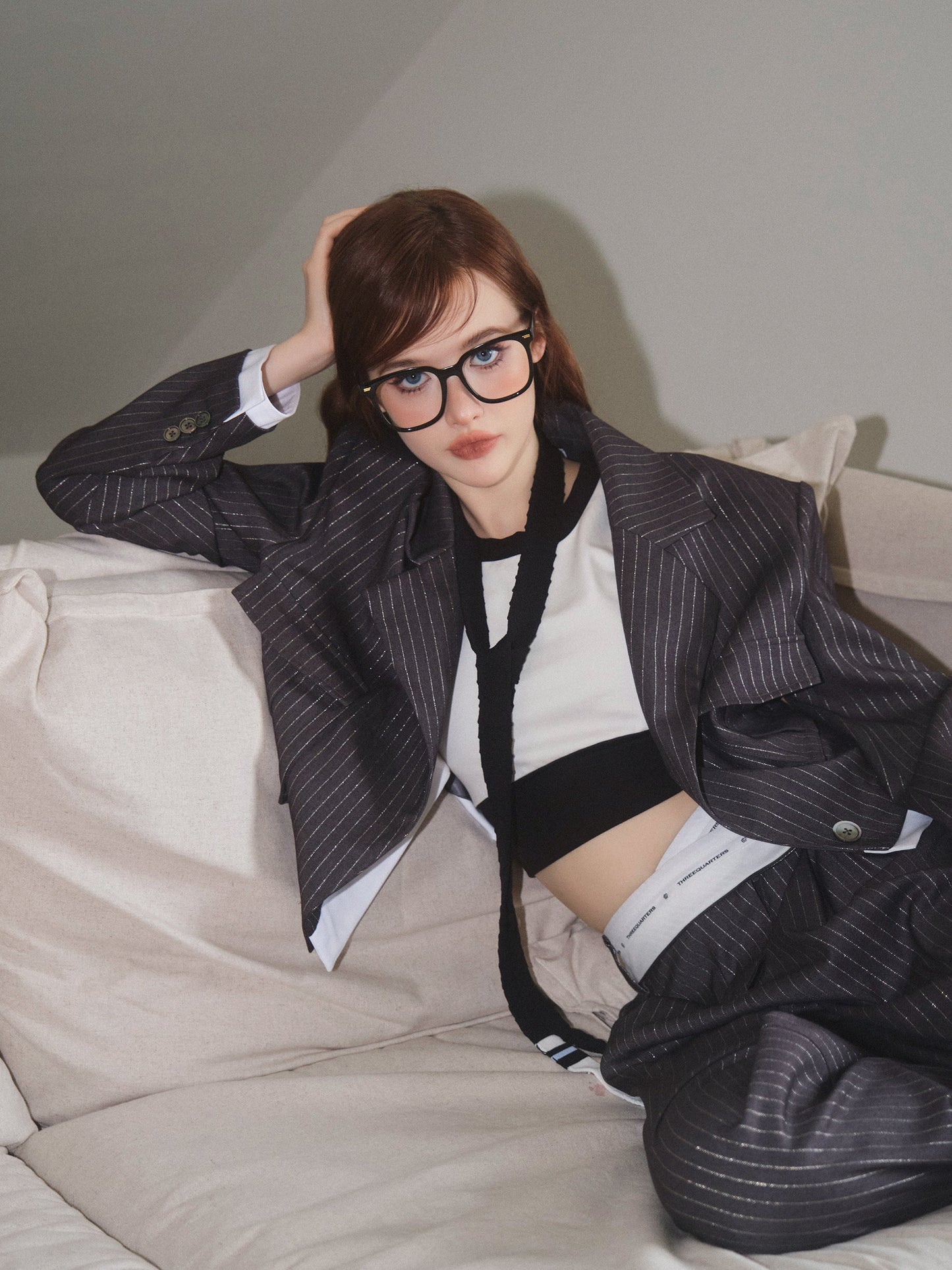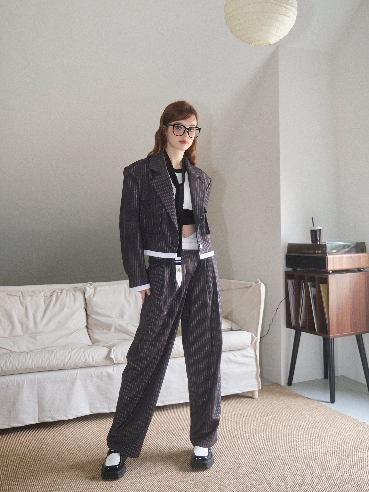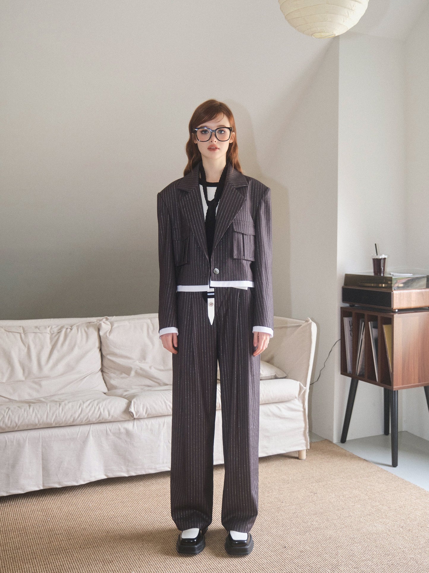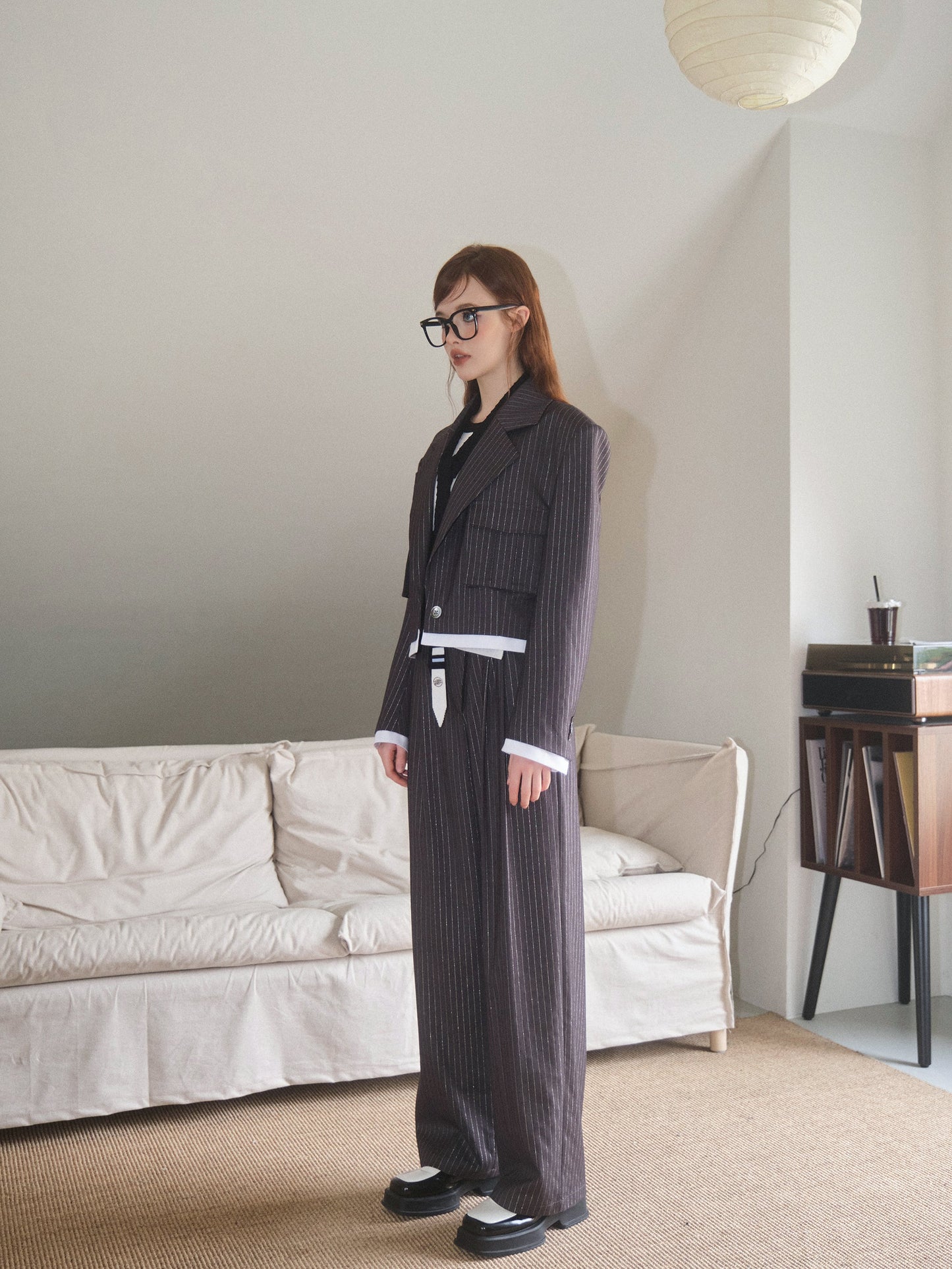 THREE QUARTERS Silver Striped Copped Blazer and Trousers