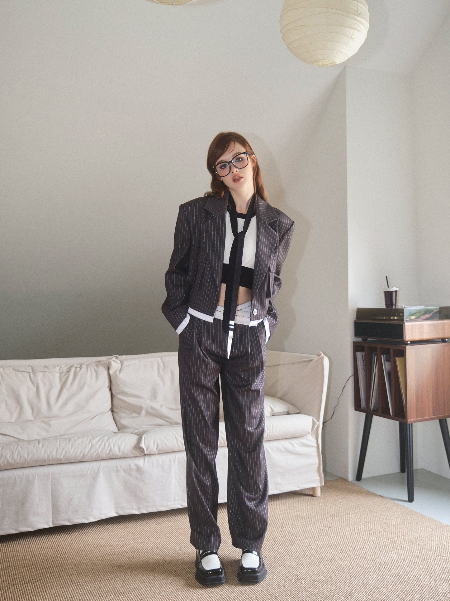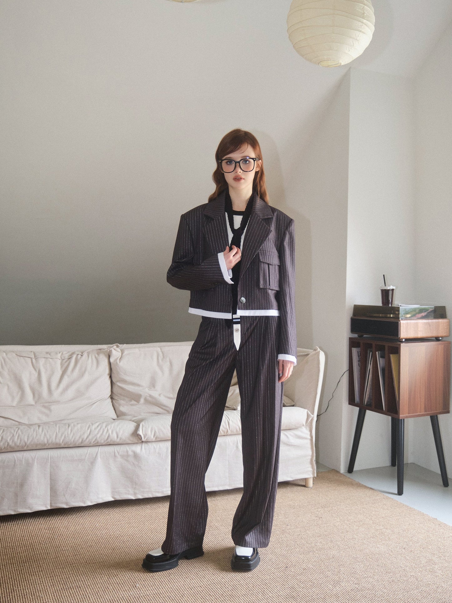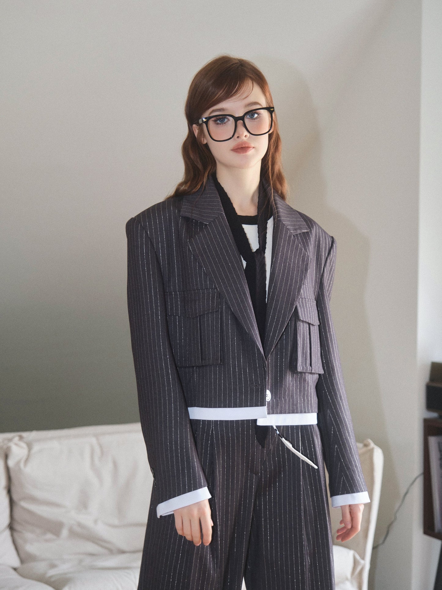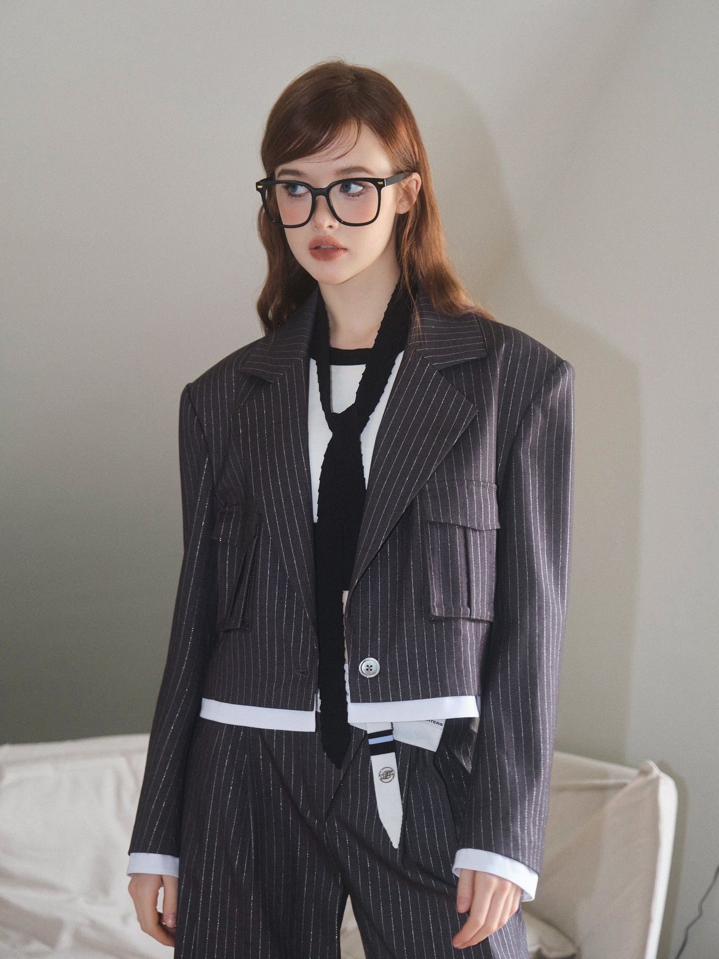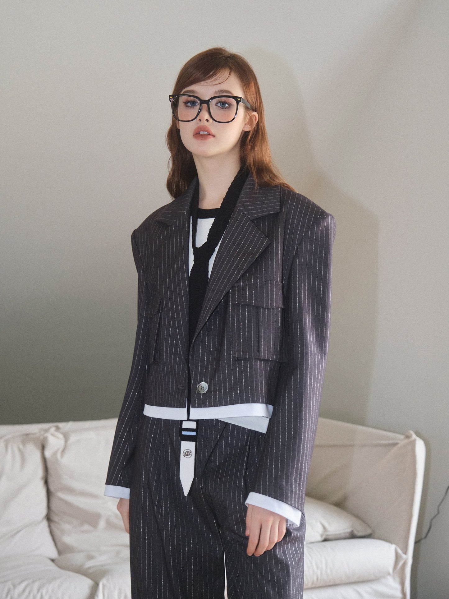 THREE QUARTERS Silver Striped Copped Blazer and Trousers