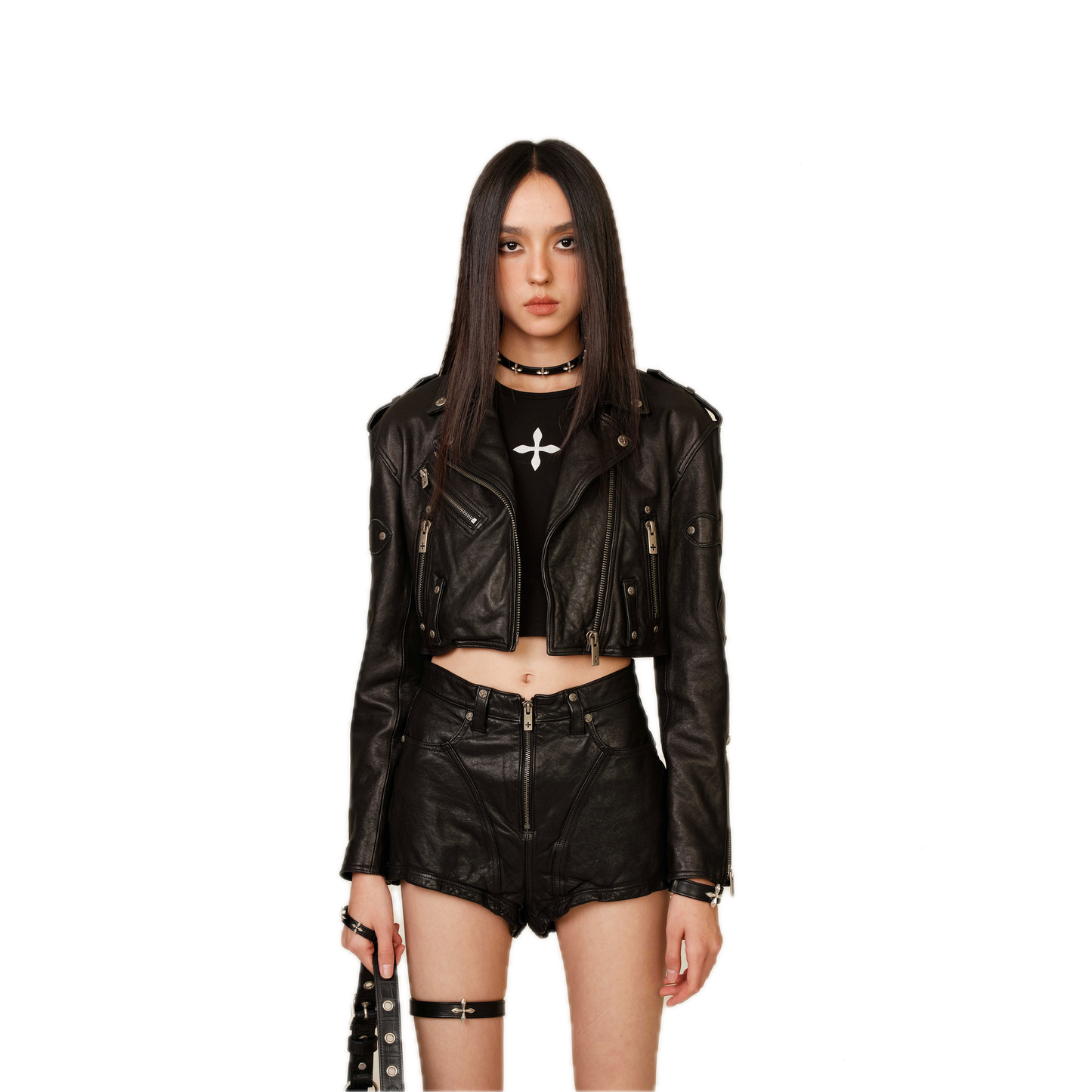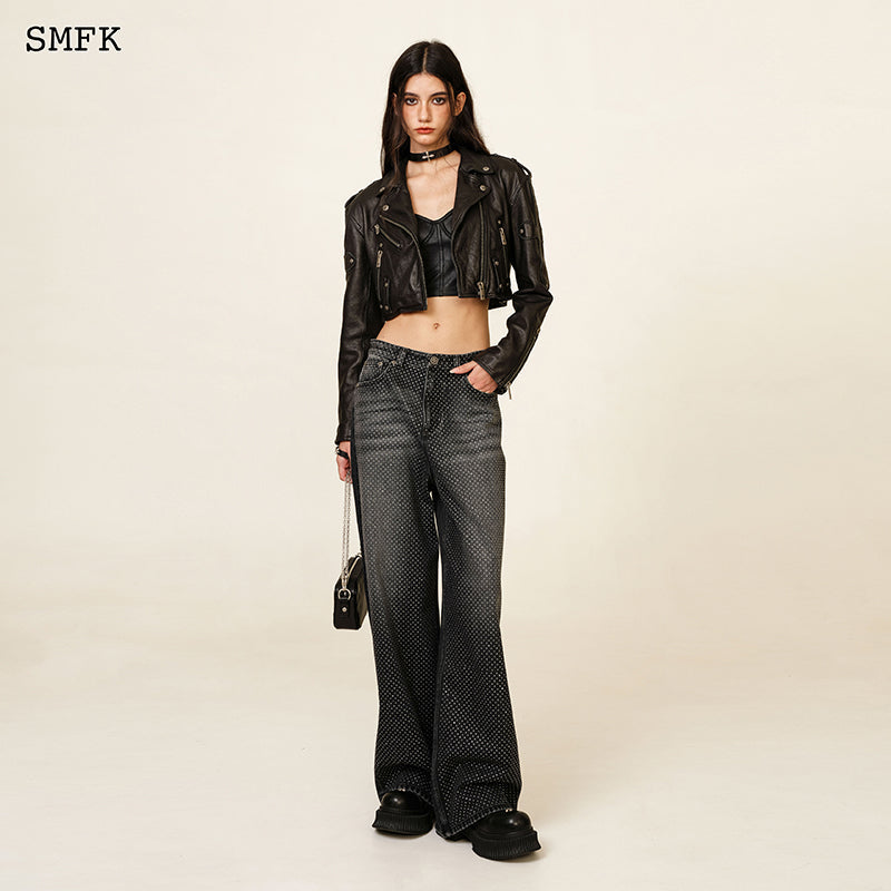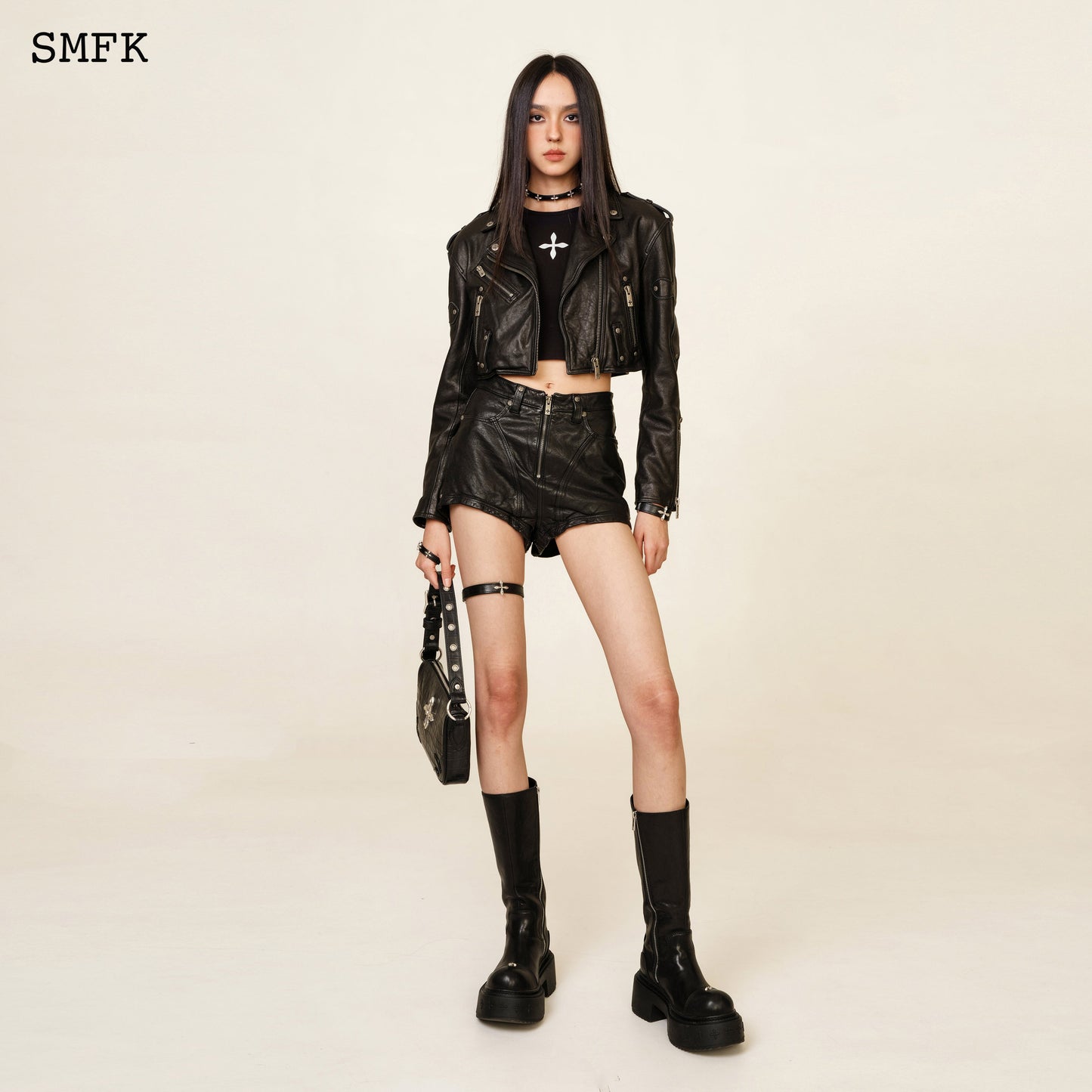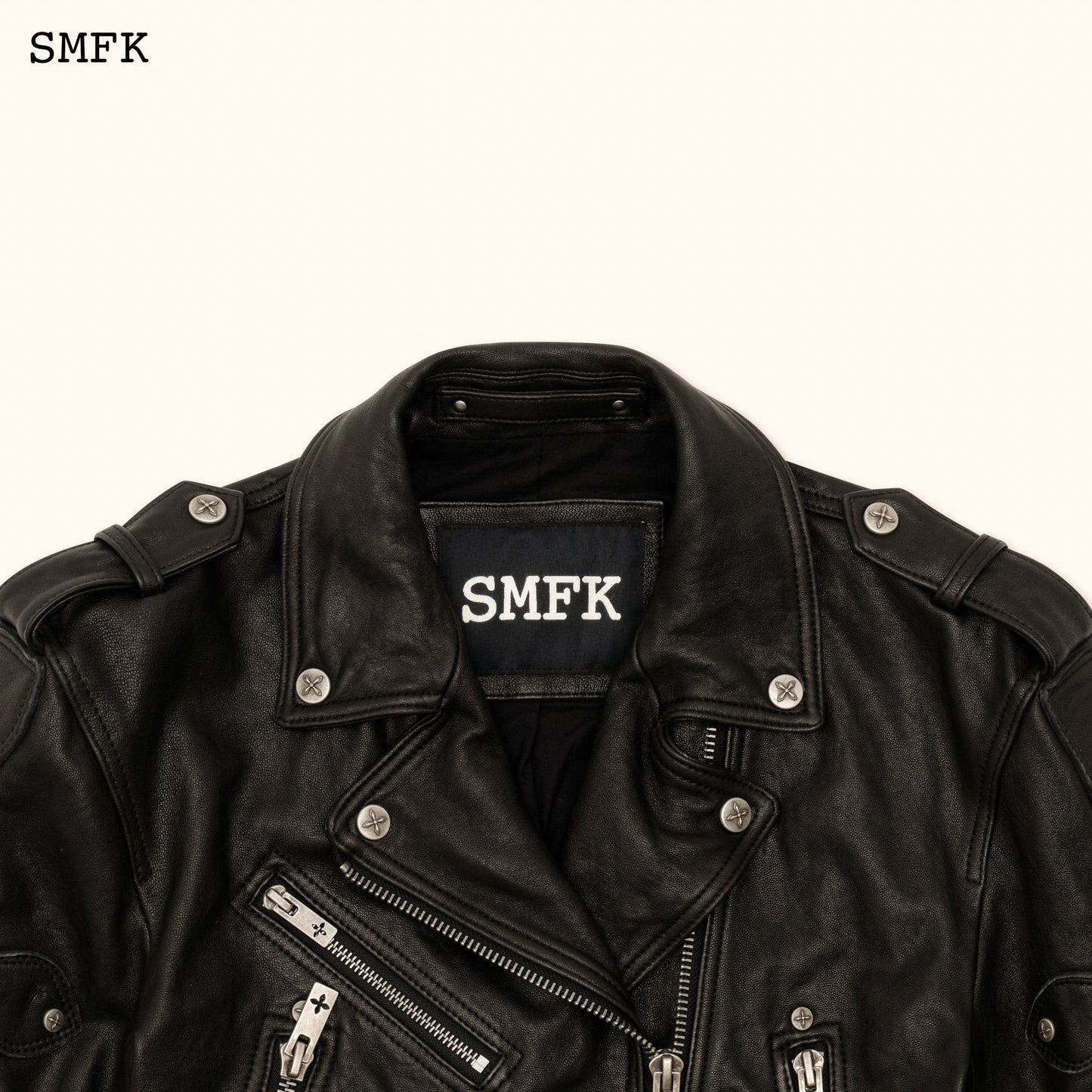 - Design: SMFK's short-body motorcycle leather jacket was designed in 2021, continuing the cross-arm design. The 2024 version is stitched in vintage signature lambskin. The garment washing process presents pure wild and natural machinical leather clothing.
