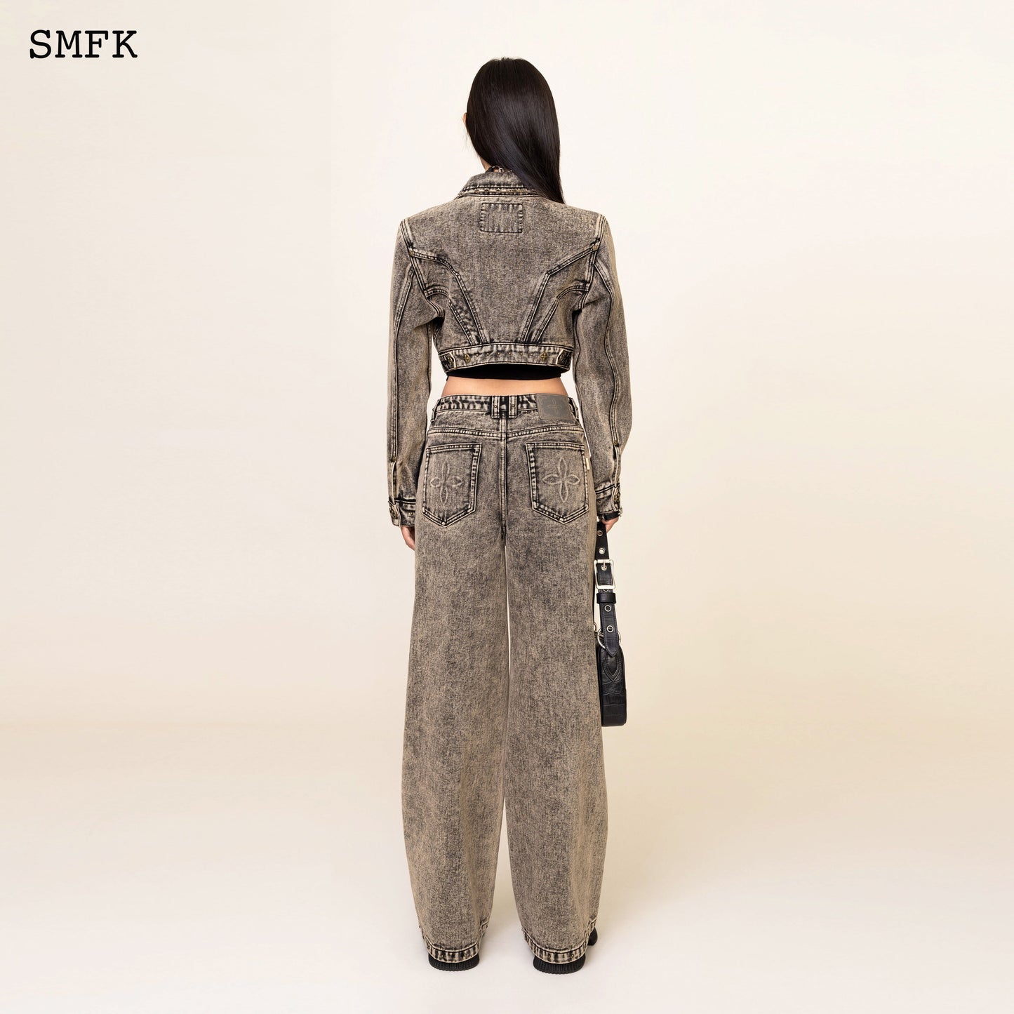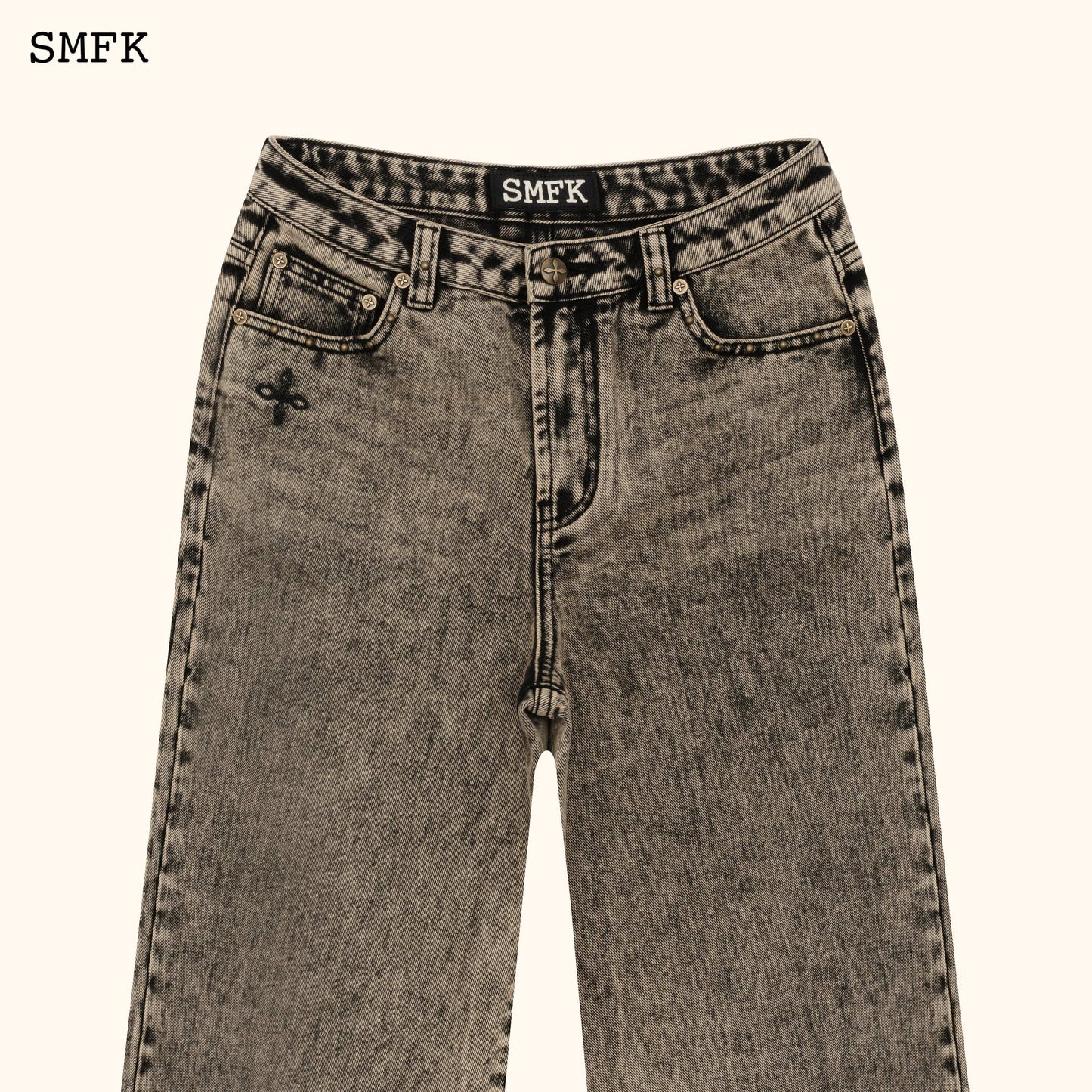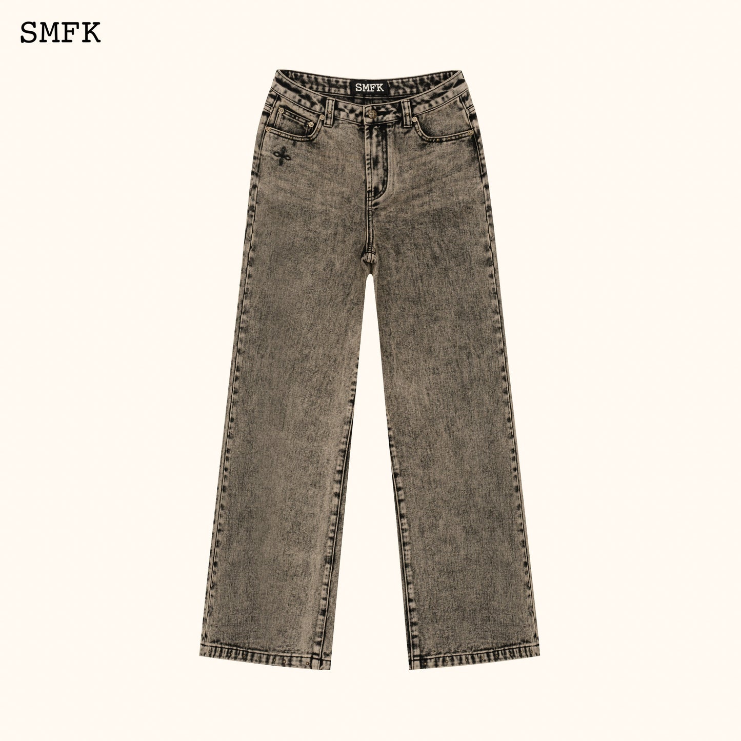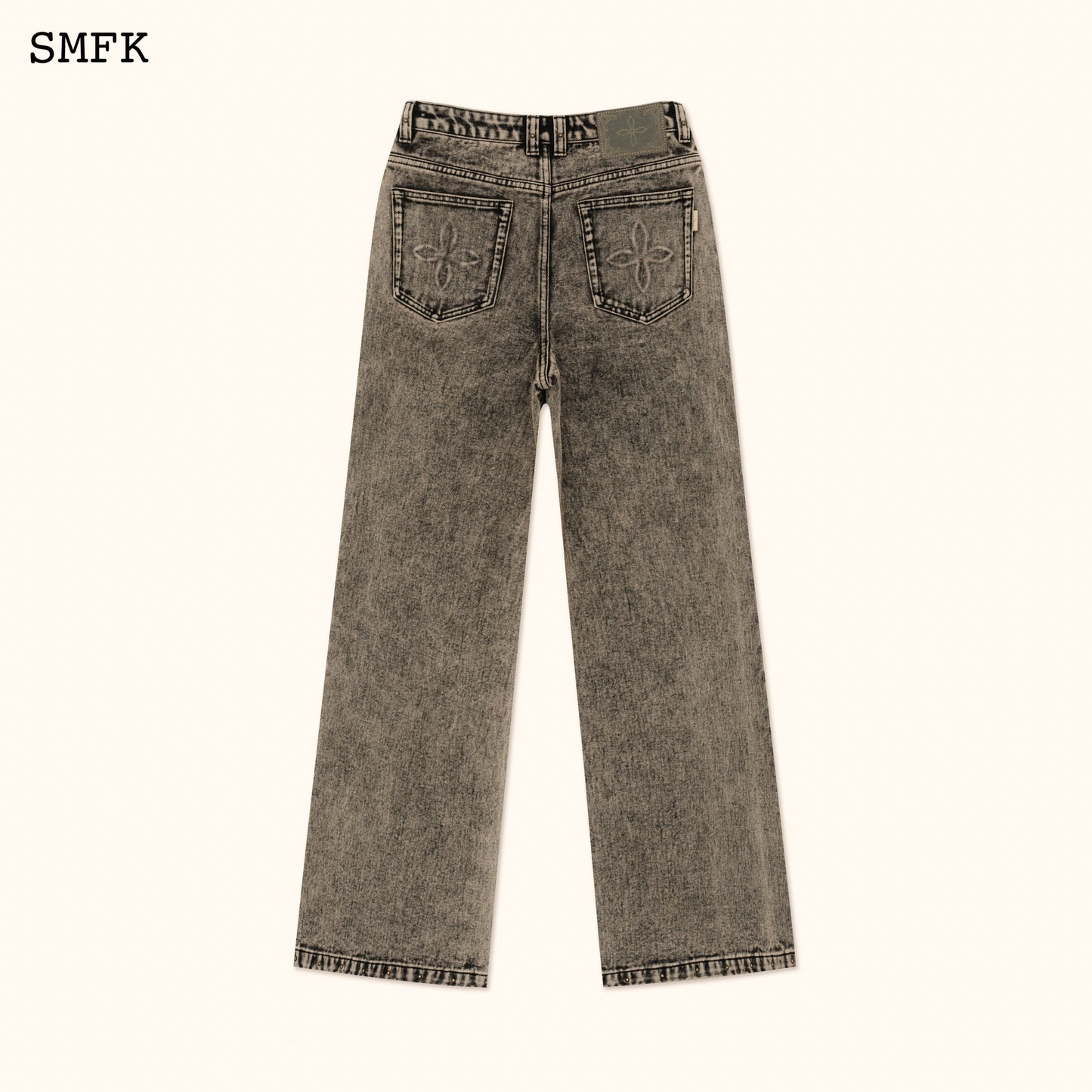 - Design: SMFK classic wide-leg jeans. Minimalist fit and effect. In 2024, the production process of twilight denim will be developed, and the metal rivets of rock and roll will be added.
