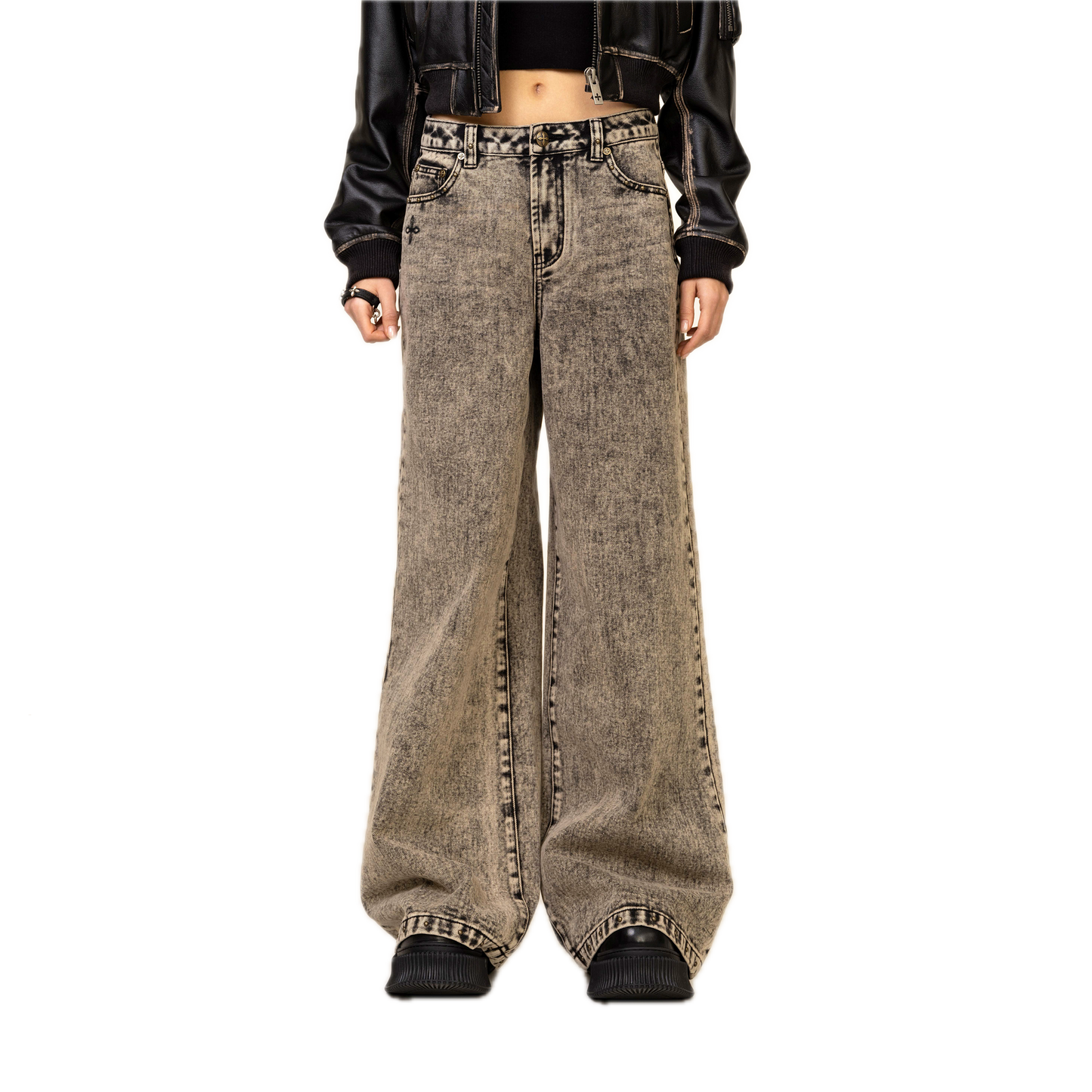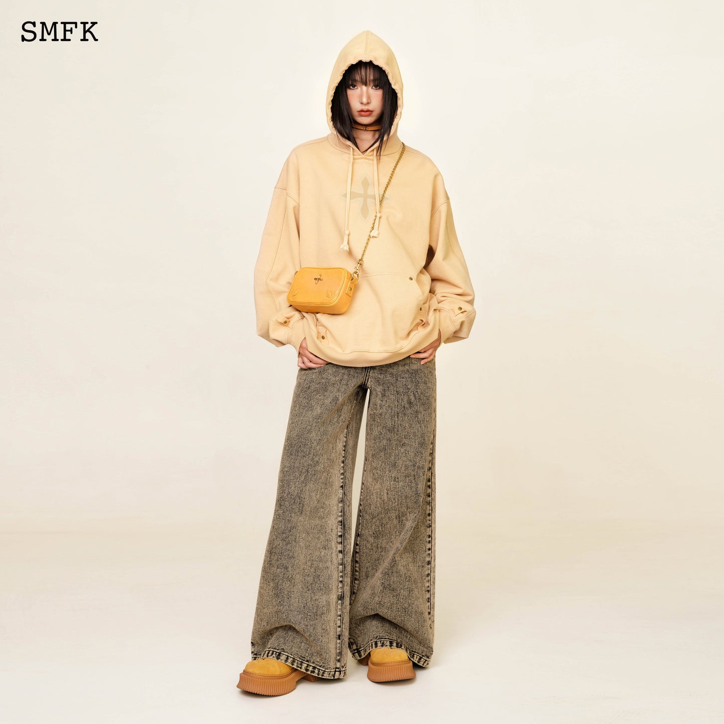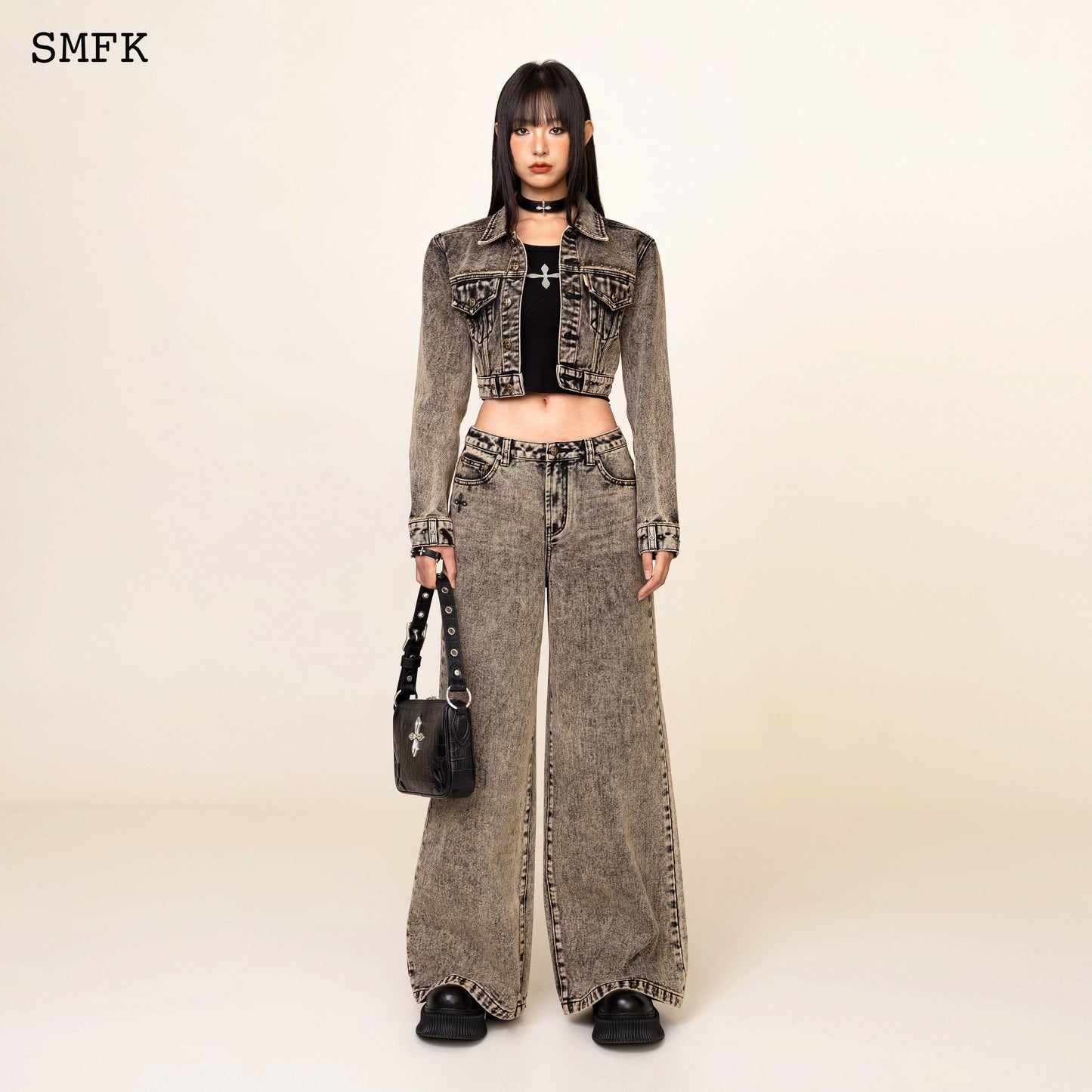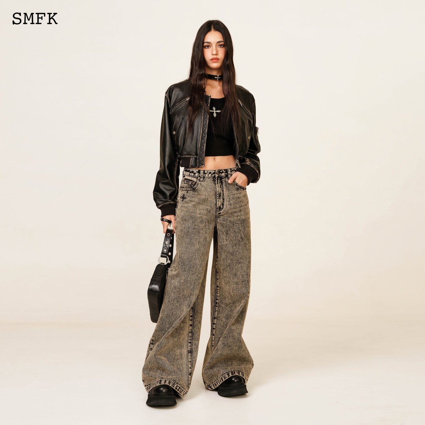 - Design: SMFK classic wide-leg jeans. Minimalist fit and effect. In 2024, the production process of twilight denim will be developed, and the metal rivets of rock and roll will be added.